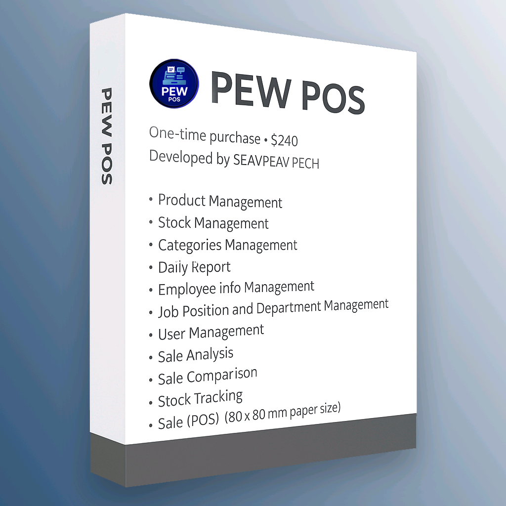 [English below] ឡូយអស្ទះ ប្រើប្រាស់ប្រព័ន្ធគ្រប់គ្រងអាជីវកម្មដោយឥតគិតថ្លៃ ១ ខែពេញ រួមជាមួយការបញ្ចុះម្លៃ 80% ប្រព័ន្ធគ្រប់គ្រងអាជីវកម្ម PEW POS | កម្មវិធី POS ដ៏មានអានុភាពសម្រាប់ Windows សម្រាប់ហាងកាហ្វេ ហាងលក់រាយ និងអាជីវកម្មតូច និងមធ្យម សួស្តី ពួកយើងគឺ Pixel Team ជាអ្នកអភិវឌ្ឍន៍កម្មវិធីឯករាជ្យ។ ពួកយើងបានបង្កើតប្រព័ន្ធគ្រប់គ្រង PEW POS — កម្មវិធី Windows ដែលត្រូវបានរចនាឡើងសម្រាប់គ្រប់គ្រងការលក់ក្នុងហាងកាហ្វេ ហាងលក់រាយ និងអាជីវកម្មខ្នាតតូច។ ខាងក្រោមនេះនឹងណែនាំអ្នកអំពីដំណើរការដំឡើង និងបង្ហាញមុខងារសំខាន់ៗដែលត្រូវបានរចនាឡើងដើម្បីជួយអ្នកគ្រប់គ្រងអាជីវកម្មរបស់អ្នកប្រកបដោយប្រសិទ្ធភាព។ ✅ មុខងារសំខាន់ៗរួមមាន៖ 👉ការគ្រប់គ្រងផលិតផល ស្តុក និងប្រភេទផលិតផល 👉ការលក់ (POS) ជាមួយការបោះពុម្ពវិក្កយបត្រ (80 x 80 ម.ម) 👉ការបង្កើតរបាយការណ៍ប្រចាំថ្ងៃ និងតាមវេន 👉ការគ្រប់គ្រងព័ត៍មានបុគ្គលិក និងផ្នែក 👉ឧបករណ៍វិភាគការលក់ និងការប្រៀបធៀបការលក់ 👉ការគ្រប់គ្រងអ្នកប្រើប្រាស់ និងការគ្រប់គ្រងតួនាទីរបស់អ្នកប្រើប្រាស់ 👉មុខងារបម្រុងទុក និងស្តារទិន្នន័យ 👉ការកំណត់រចនាសម្ព័ន្ធពន្ធ និងរបាយការណ៍បិទវេន 💼 ហេតុអ្វីត្រូវជ្រើសរើស PEW POS? 🖨 ងាយស្រួលដំឡើង និងប្រើប្រាស់ 🖨 លឿន ស្ថិរភាព និងកាន់តែងាយស្រួលប្រើប្រាស់លើ Touch Screen 🖨 រចនាឡើងជាពិសេសសម្រាប់ប្រព័ន្ធ Windows 🖨 ល្អឥតខ្ចោះសម្រាប់ហាងកាហ្វេ ហាងលក់រាយតូចៗ ហាងសម្លៀកបំពាក់ និងអាជីវកម្មផ្សេងៗទៀត 📥 ការណែនាំអំពីការដំឡើង៖ ចុចខាងស្តាំលើឯកសារដំឡើង > ដំណើរការជា Admin សម្រាប់អ្នកប្រើប្រាស់ទាំងអស់ ធ្វើតាមជំហាននៃកម្មវិធីដំឡើង បើកដំណើរការពី Desktop ឬ Start Menu 🔐 ព័ត៌មានសម្រាប់ការចូលសាកល្បង៖ ឈ្មោះអ្នកប្រើ និង ពាក្យសម្ងាត់ ត្រូវបានភ្ជាប់ជាមួយ Source Application សម្រាប់ការប្រើប្រាស់សាកល្បង ១ ខែពេញដោយឥតគិតថ្លៃ ដោយលោកអ្នកអាចចូលទៅដោតឡូត តាមរយៈការស្កេន QR Code ខាងក្រោម ។ ទាញយកឥឡូវ https://drive.google.com/file/d/1Vi9tHwQVGFBaKk5lCNhgw8DzQXLnDmqE/view?usp=drive_link 📩 ចាប់អារម្មណ៍ក្នុងការប្រើប្រាស់ប្រព័ន្ធ POS នេះសម្រាប់អាជីវកម្មរបស់អ្នក? ទាក់ទងមកខ្ញុំតាម៖ pea*********@gmail.comClick To Sent Email ________________________________________________________________ Super Cool! 🚀 Try the Business Management System for FREE for a Full Month! PEW POS Management System | Powerful Windows POS Software for Cafés, Retail Shops, and Small to Medium Businesses Hello, we are Pixel Team, a group of independent software developers. We have created the PEW POS Management System — a Windows application designed to manage sales for cafés, retail shops, and small businesses. Below, we’ll guide you through the installation process and showcase key features designed to help you manage your business efficiently. ✅ Key Features Include: 👉 Product, stock, and category management 👉 Sales (POS) with bill printing (80 x 80 mm) 👉 Daily and shift-based report generation 👉 Employee and department information management 👉 Sales analysis and comparison tools 👉 User management and role control 👉 Backup and restore functionality 👉 Tax configuration and shift-closing reports 💼 Why Choose PEW POS? 🖨 Easy to install and use 🖨 Fast, stable, and optimized for touchscreen use 🖨 Designed specifically for Windows systems 🖨 Perfect for cafés, small retail shops, clothing stores, and other businesses 📥 Installation Guide: Right-click the installer > Run as Administrator for all users Follow the s