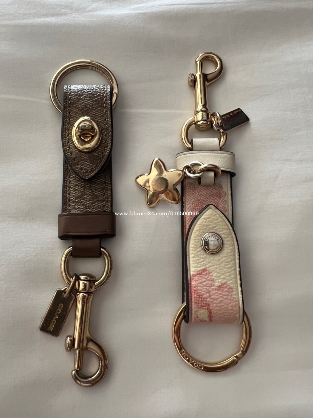 បណ្តោង សោប្រេន🫰🏼COACH Coach Keychain Trigger Snap Bag Charm Pink Strap 👆from Japan Used 🥇ធានាគុណភាពនៅថ្មី90% រ 👉តំលៃ Pink 15.5$ Brown 13.5$📦រួមដឹកផ្ញើជូន 📞ខលទាក់ទង 016506xxxClick To Call -តេឡេក្រាម ✈️telegram https://t.me/BullFrog_Kh -ទីតាំងផ្ទល់⛳ https://maps.app.goo.gl/GDFDv8uLB6nSFVZi7?g_st=ipc 🔊 មុននិងមកទាក់ទងផង🙏