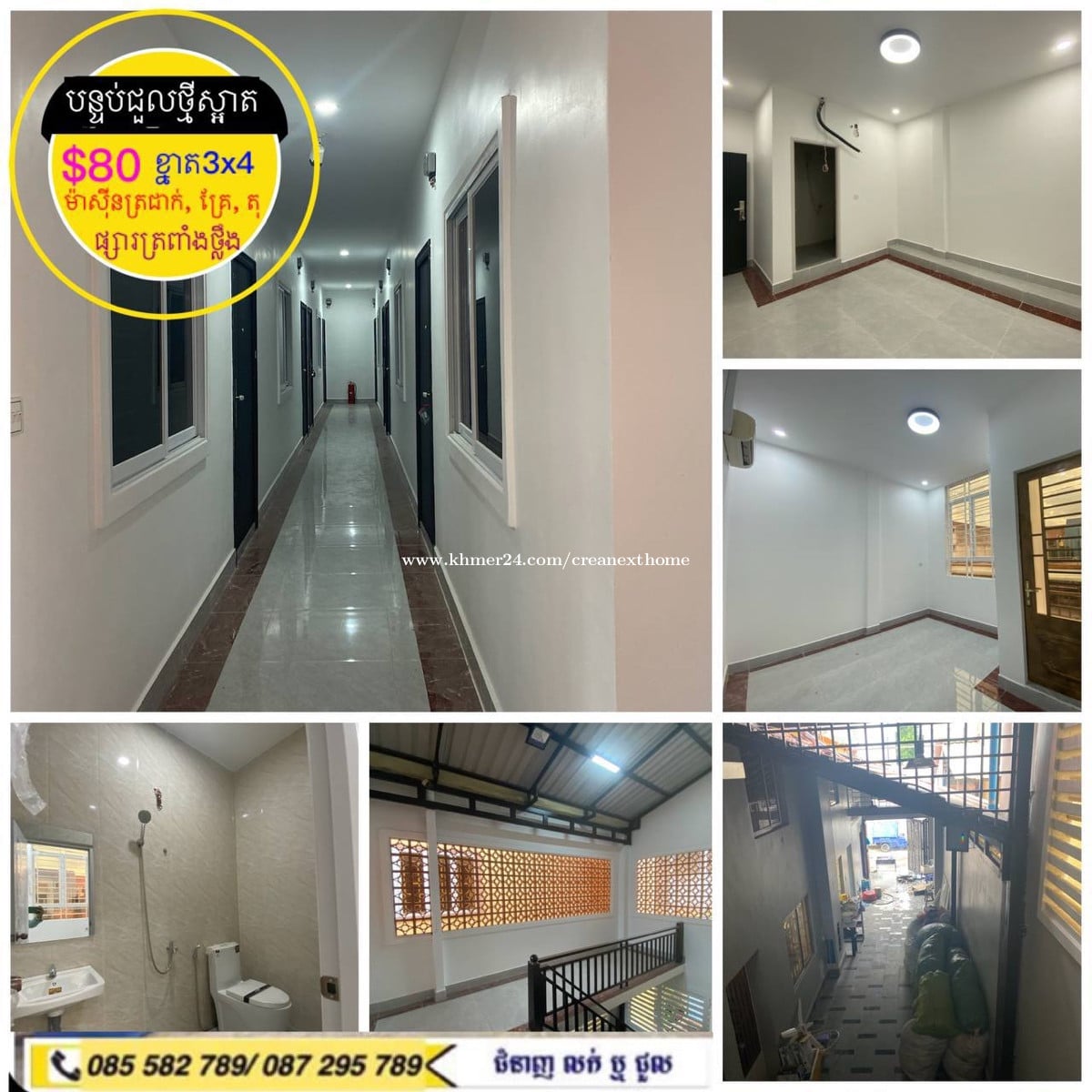 #បន្ទប់ថ្មីសម្រាប់ជួល ក្នុងបុរីពិភពថ្មី ផ្សារត្រពាំងថ្លឹង វេងស្រេង -តំលៃជួល1បន្ទប់ $80(សល់1បន្ទប់) 👉សម្ភារះរួមមាន; -ម៉ាសុីនត្រជាក់1គ្រឿង -តុ1 -គ្រែគេង1+ពូកខ្នើយ1ឈុត -ខ្នាត3ឞ x 4ម - មានកន្លែងទុកម៉ូតូ ធំទូលាយ 3ម និង កន្លែងហាលខោអាវ 👉បញ្ជាក់បន្ទប់ទើបសង់ថ្មីរួច 👉សំរាប់បងប្អូនចង់រកបន្ទប់ស្នាក់នៅ ផ្សារត្រពាំងថ្លឹង ផ្លូវវេងស្រេង ☎️ 070418xxxClick To Call | 078418xxxClick To Call Telegram : https://t.me/Sienghai 1. SIENGHAI Channel : https://t.me/sienghaioucrea 2. HOUSE SALE : https://t.me/creasale 3. HOUSE RENT : https://t.me/crearent 4. Condo & Apartment : https://t.me/creaozone 5. Commercial Bulding : https://t.me/creabizzone 6. LAND : https://t.me/CREAAILAND