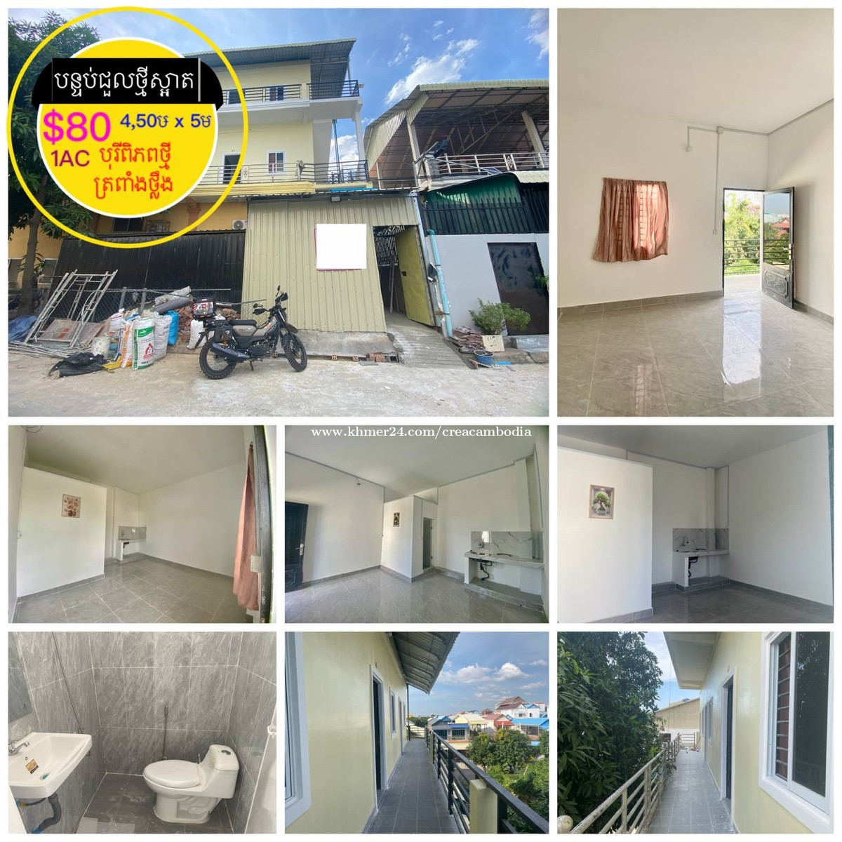 #បន្ទប់ថ្មីសម្រាប់ជួល ក្នុងបុរីពិភពថ្មី ផ្សារត្រពាំងថ្លឹង វេងស្រេង -តំលៃជួល1បន្ទប់ $80 👉សម្ភារះរួមមាន; -ម៉ាសុីនត្រជាក់1គ្រឿង -វាំងនន -ឡាបូលាងចាន -free ចំណតម៉ូតូ -ទឹកភ្លើងរដ្ឋ -ខ្នាត4,50ឞ x 5ឞ - មានកន្លែងទុកម៉ូតូ ធំទូលាយ 3ម និង កន្លែងហាលខោអាវ 👉បញ្ជាក់បន្ទប់ទើបសង់ថ្មីរួច 👉សំរាប់បងប្អូនចង់រកបន្ទប់ស្នាក់នៅ ផ្សារត្រពាំងថ្លឹង ផ្លូវវេងស្រេង ☎️ 070418xxxClick To Call | 078418xxxClick To Call Telegram : https://t.me/Sienghai 1. SIENGHAI Channel : https://t.me/sienghaioucrea 2. HOUSE SALE : https://t.me/creasale 3. HOUSE RENT : https://t.me/crearent 4. Condo & Apartment : https://t.me/creaozone 5. Commercial Bulding : https://t.me/creabizzone 6. LAND : https://t.me/CREAAILAND