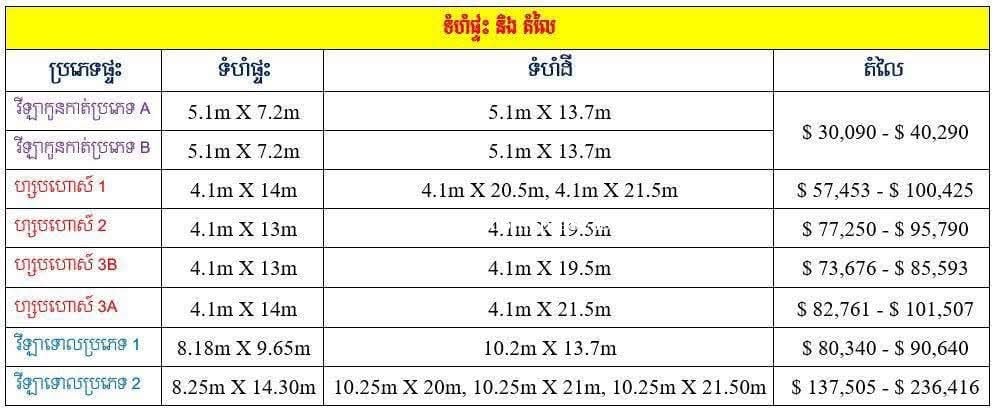 ផ្ទះស្អាត ជិតផ្សារ ទំហំដី 4,1x19.5 ទំហំផ្ទះ 4,1x13m