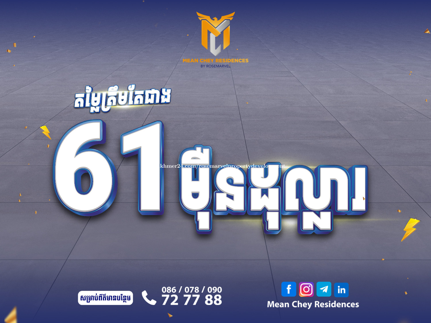អបអរសាទរ ការបើកអាកាសយានដ្ឋានអន្តរជាតិតេជោ (KTI) បុរី មានជ័យ រ៉េស៊ីដិនស៍ មានការផ្តល់ជូនជាពិសេសសម្រាប់ វិឡាព្រីនដ៏ប្រណីតក្នុងតម្លៃត្រឹមតែជាង $61x,xxx ប៉ុណ្ណោះ! ទីតាំងល្អឥតខ្ចោះ ស្ថិតនៅទល់មុខផ្សារទំនើប AEON 3 និងនៅលើមហាវិថីសម្តេច ហ៊ុន សែន (ផ្លូវ ៦០ ម៉ែត្រ) និង ត្រឹមតែ ១៥ នាទីប៉ុណ្ណោះពីអាកាសយានដ្ឋានអន្តរជាតិតេជោ (KTI) ។ រួសរាន់ឡើង! ការផ្តល់ជូននេះមានសម្រាប់តែរយៈពេលខ្លីប៉ុណ្ណោះ។ សម្រាប់ព័ត៌មានលម្អិត៖ 📞ទូរស័ព្ទ៖ 086 / 078 / 090727xxxClick To Call 📱Telegram: https://t.me/meancheyresidences Borey Mean Chey Residences 倾情推出尊贵别墅, 价格从61x,xxx 美元起,轻松拥有理想家园! ✨ 核心优势 ✅ 黄金地段:正对 AEON 3 永旺购物中心 ✅ 便捷交通:坐落于 洪森大道(60米路) ✅ 快速出行:仅 15 分钟直达德乔国际机场(KTI) 🔥 机会难得,限时优惠! 数量有限,先到先得! 📞 咨询热线:086 / 078 / 090727xxxClick To Call