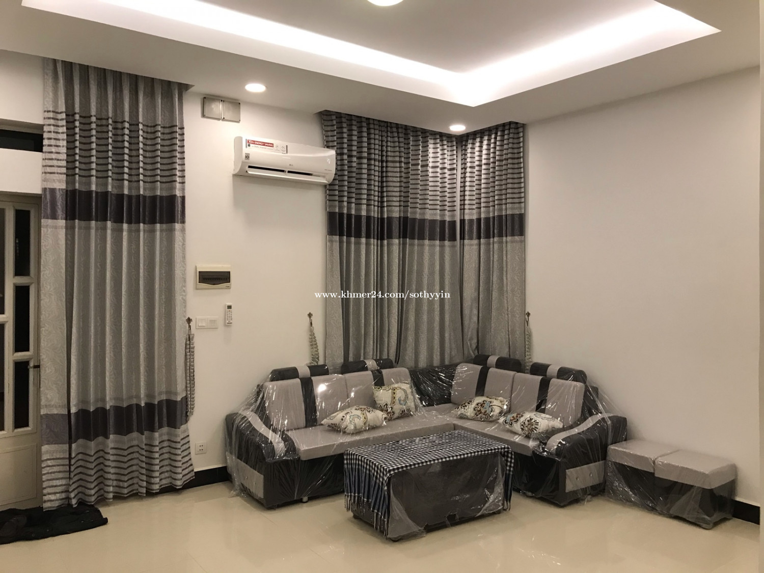 ផ្ទះស្អាត ត្រជាកស្រួលរស់នៅ មានបំពាក់ម៉ាស៊ីនត្រជាក់ ទូតាំង សាឡុង គ្រែ មួយចំនួន