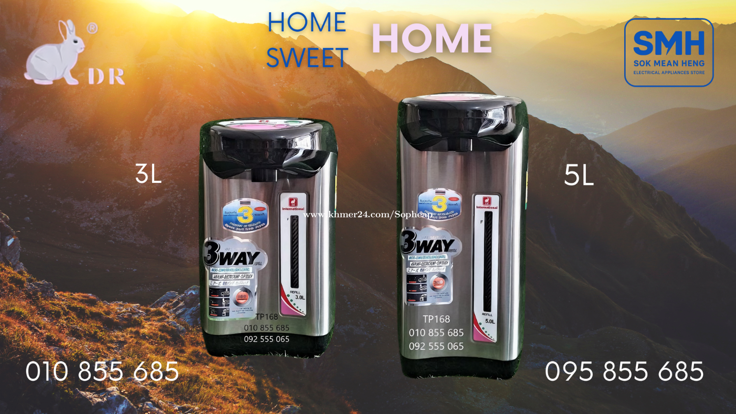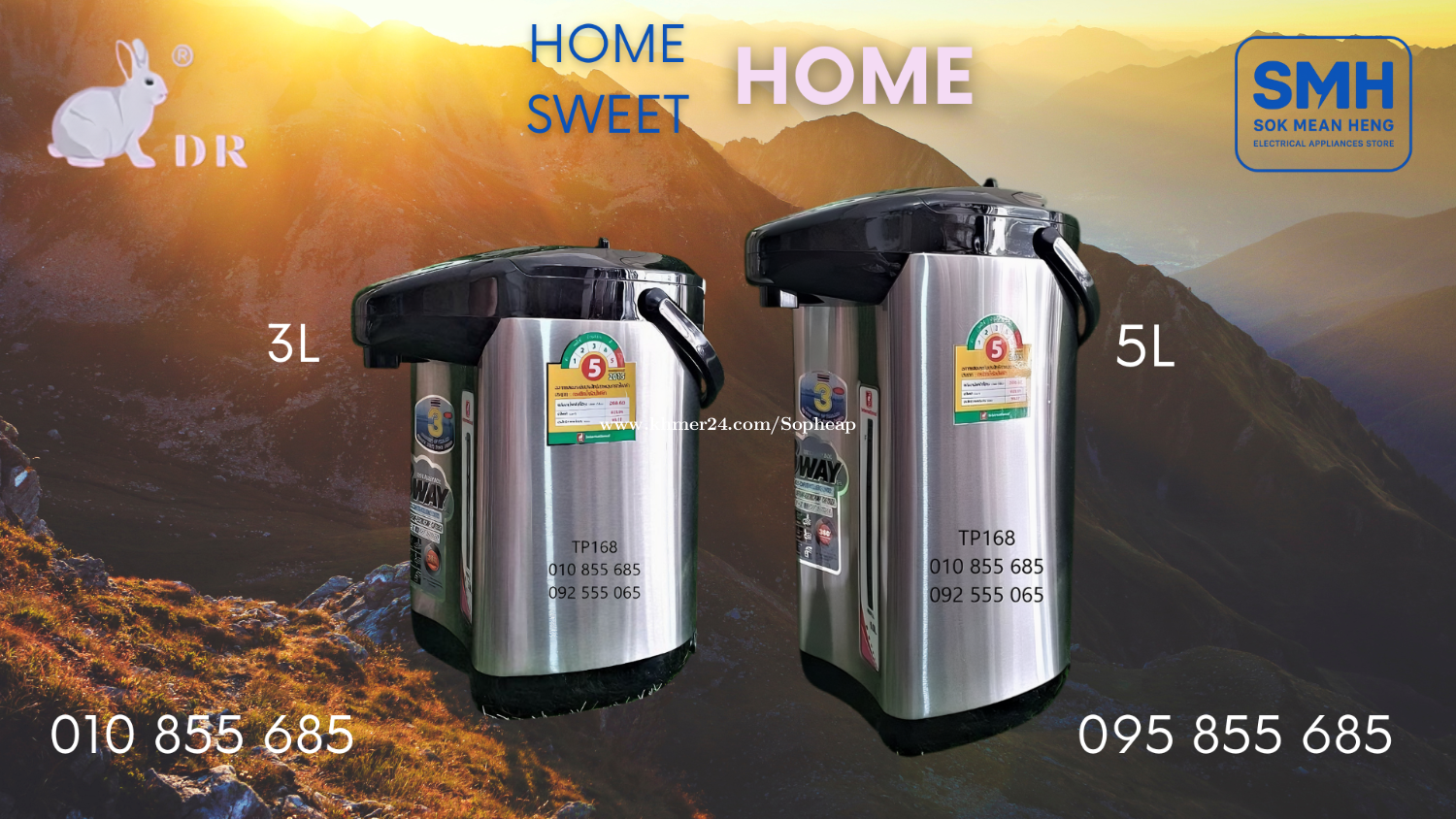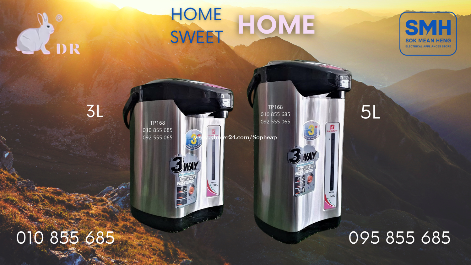 បំពង់ទឹកក្តៅអគ្គីសនី_អ៊ីណុក International DR Electric Air Pot _ 3L / 5L _ Inox (New) . - ផលិតផលប្រទេសថៃ / Made in Thailand - Materials: អ៊ីណុក / Inox - ដាំទឹកពុះ 100% / Fully Boil Function (100% Fully Boil) - 3 Ways Dispenser: Air Pump / Electric Pump / Cup Touch - បង្វិលបាន 360° / 360° Coreless Basic . 1. បំពង់ទឹកក្តៅអគ្គីសនី_អ៊ីណុក Inter DR-300 Electric Air Pot _ 3L _ Inox - Capacity: 3លីត្រ / 3Litres - Power: 730W - 220V ~ 50Hz * តំលៃ / Price: 25.9$ . 2. បំពង់ទឹកក្តៅអគ្គីសនី_អ៊ីណុក Inter DR-500 Electric Air Pot _ 5L _ Inox - Capacity: 5លីត្រ / 5Litres - Power: 730W - 220V ~ 50Hz * តំលៃ / Price: 30.9$ . SMH / សុខ មាន ហេង / Sok Mean Heng ហាងលក់គ្រឿងប្រើប្រាស់អគ្គិសនី / Electrical Appliances Store . ✅ ហាងផ្លូវការដែលមានការទទួលស្គាល់ត្រឹមត្រូវដោយ Khmer24 / Verified Business Account by Khmer24 💯 ទទួលបានទំនុកចិត្តខ្ពស់ពីអតិថិជនជាច្រើន / Trusted by Real Customers. 📍 មានទីតាំងច្បាស់លាស់ និងពិតប្រាកដនៅភ្នំពេញ / We have a clear and real/verified location in Phnom Penh. . Phone / Telegram (សេវាកម្មរហ័ស / Fast Service): Smart: 010855xxxClick To Call / https://t.me/Annsopheap Cellcard: 095855xxxClick To Call / http://t.me/Annsopheap095 . អាស័យដ្ឋាន / Address: No. 392, MaoTseToung Blvd. (St. 245), Phnom Penh. (Near P Jolie Beauty Center) . ផែនទី / Maps: https://www.google.com/maps?q=11.55595844757693,104.90165490657091&15 . #រូបទន្សាយ #បំពង់ទឹកក្តៅ #បំពង់ទឹកក្តៅអគ្គីសនី #បំពង់ទឹកក្តៅរហ័ស #អ៊ីណុក #ថៃ #គ្រឿងអគ្គីសនី #គ្រឿងប្រើប្រាស់អគ្គិសនី #InternationalDR #AirPot #ElectricAirPot #JarPot #ThermoPot #WaterDispenser #DR300 #DR500 #Inox #Thailand #SMH #Appliances #ApplianceStore #HomeAppaliance #ElectricAppliances #ElectricalAppliances #Promotion #Discount #Save #Free #New