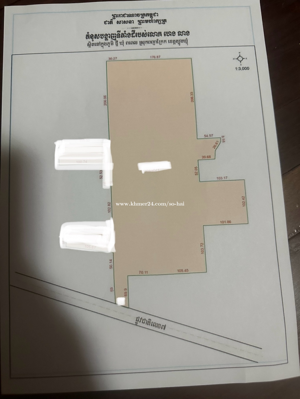 ទីតាំងដីល្អ អាចសង់រោងចក្រ នឹងពុះដីឡូតិ៍ ដីមានទំហំ13ហិតា ក្បាលដី21mជាប់ផ្លូវជាតិលេខ7 ខាងកេីតជាប់ផ្ទះវីឡា ខាងលិចជាប់ផ្លូវ10m ដីស្មេីល្អ ចាក់ដីហេីយជាប់ផ្លូវជាតិ លក់ក្នុងតំលៃ1ហិតា45.000ដុល្លារចរចាចុះបានថែមទៀត
