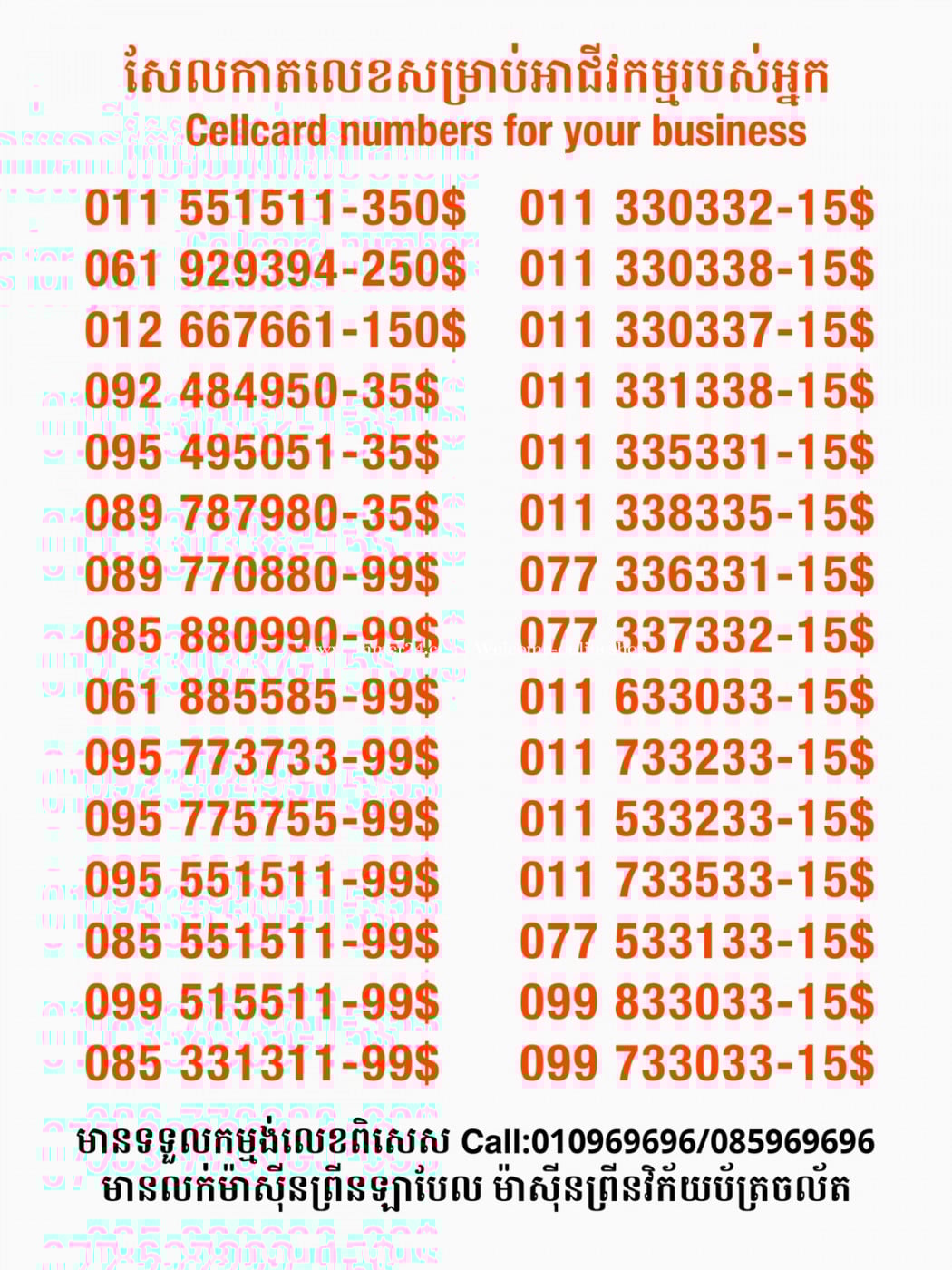 មានលក់លេខពិសេស មានទទួលកម្មង់លេខពិសេស មានលក់ម៉ាស៊ីនព្រីនឡាបែល មានលក់ម៉ាស៊ីនព្រីនវិក័យប័ត្រ មានលក់សម្ភារៈប្រើប្រាស់ក្នុងគ្រួសារ Smart Prime II 1=30$ Smart hero 1=40$ ទូរសព្ទថ្មីក្នុងប្រអប់ លក់ធូរៗរហូតអស់ពីស្តុក អាចប្រើជាឧបករណ៍សម្រាប់ស៊ែរ wifi បាន ទំនាក់ទំនង(ខ្មែរ | English | 中文):010969696 | 085969696 Telegram: https://t.me/W9696 Telegram group: https://t.me/konkonnada អាសយដ្ឋាន:ផ្ទះលេខ២៣ ផ្លូវបេតុងលេខ១ ភូមិទួលពង្រ សង្កាត់ចោមចៅ ខណ្ឌពោធិ៍សែនជ័យ រាជធានីភ្នំពេញ ទីតាំង https://goo.gl/maps/8moqW4iTHUfJEvWQ9 ដើម្បីស្វែងរកលេខអាជីវកម្មដែលលោកអ្នកពេញចិត្ត សូមចូលទៅកាន់:https://www.khmer24.com/Welcome-onlineshop