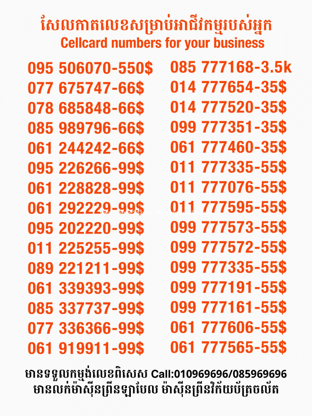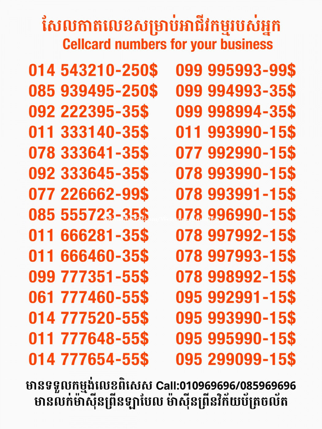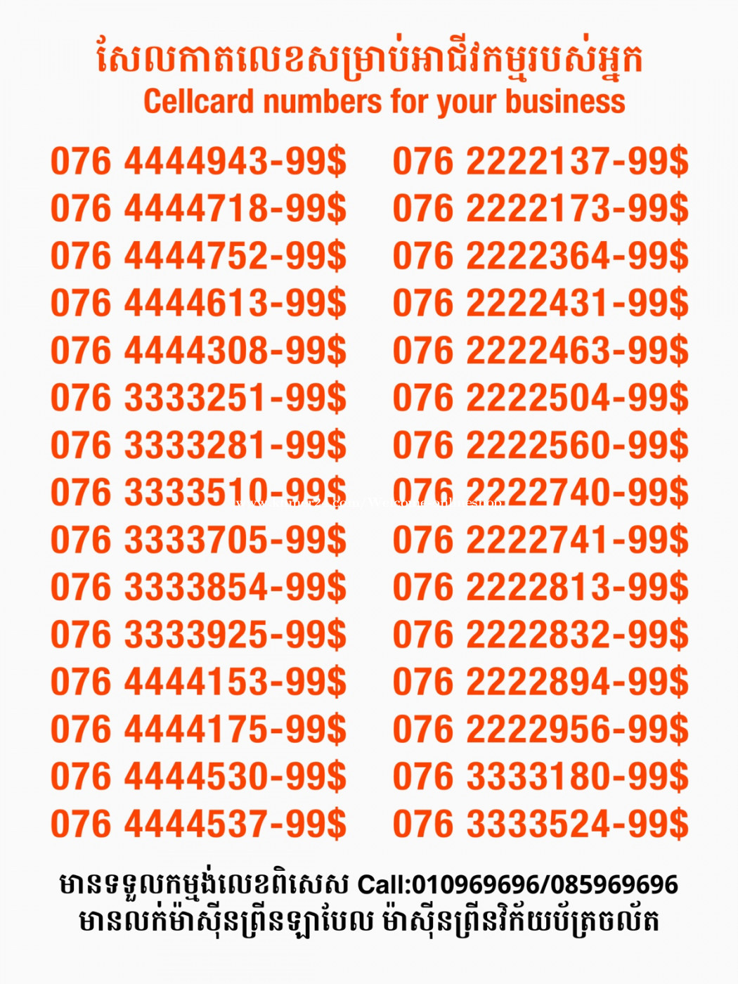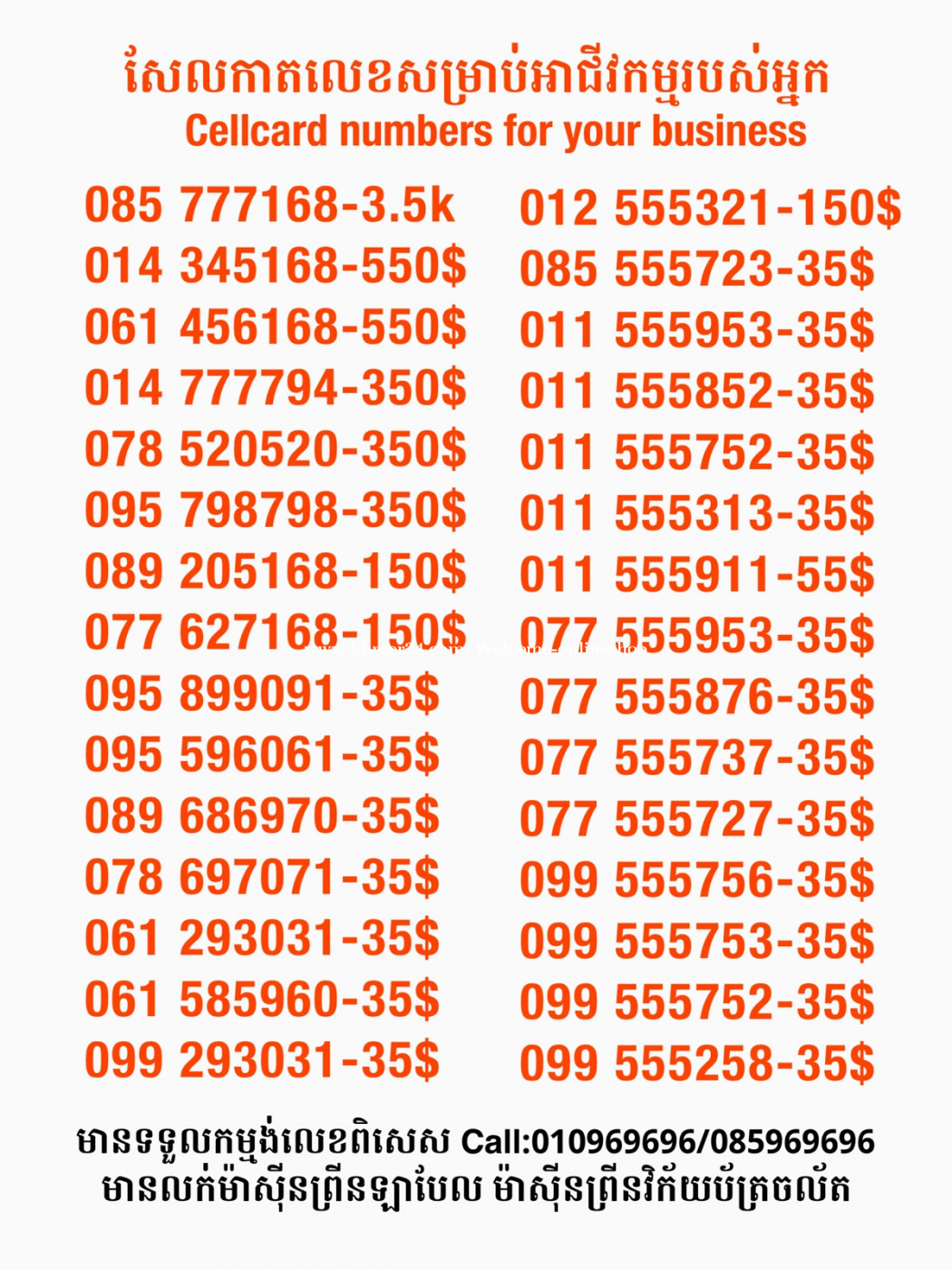 មានលក់លេខពិសេស មានទទួលកម្មង់លេខពិសេស មានលក់ម៉ាស៊ីនព្រីនឡាបែល មានលក់ម៉ាស៊ីនព្រីនវិក័យប័ត្រ មានលក់សម្ភារៈប្រើប្រាស់ក្នុងគ្រួសារ Smart Prime II 1=30$ Smart hero 1=40$ ទូរសព្ទថ្មីក្នុងប្រអប់ លក់ធូរៗរហូតអស់ពីស្តុក អាចប្រើជាឧបករណ៍សម្រាប់ស៊ែរ wifi បាន ទំនាក់ទំនង(ខ្មែរ | English | 中文):010969696 | 085969696 Telegram: https://t.me/W9696 Telegram group: https://t.me/konkonnada អាសយដ្ឋាន:ផ្ទះលេខ២៣ ផ្លូវបេតុងលេខ១ ភូមិទួលពង្រ សង្កាត់ចោមចៅ ខណ្ឌពោធិ៍សែនជ័យ រាជធានីភ្នំពេញ ទីតាំង https://goo.gl/maps/8moqW4iTHUfJEvWQ9 ដើម្បីស្វែងរកលេខអាជីវកម្មដែលលោកអ្នកពេញចិត្ត សូមចូលទៅកាន់:https://www.khmer24.com/Welcome-onlineshop