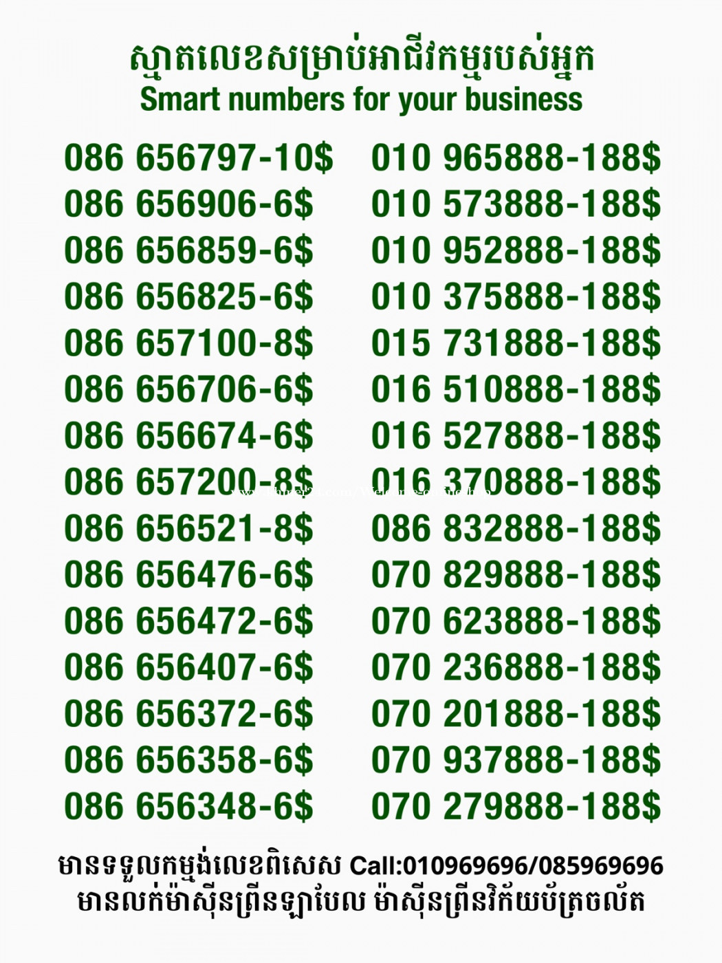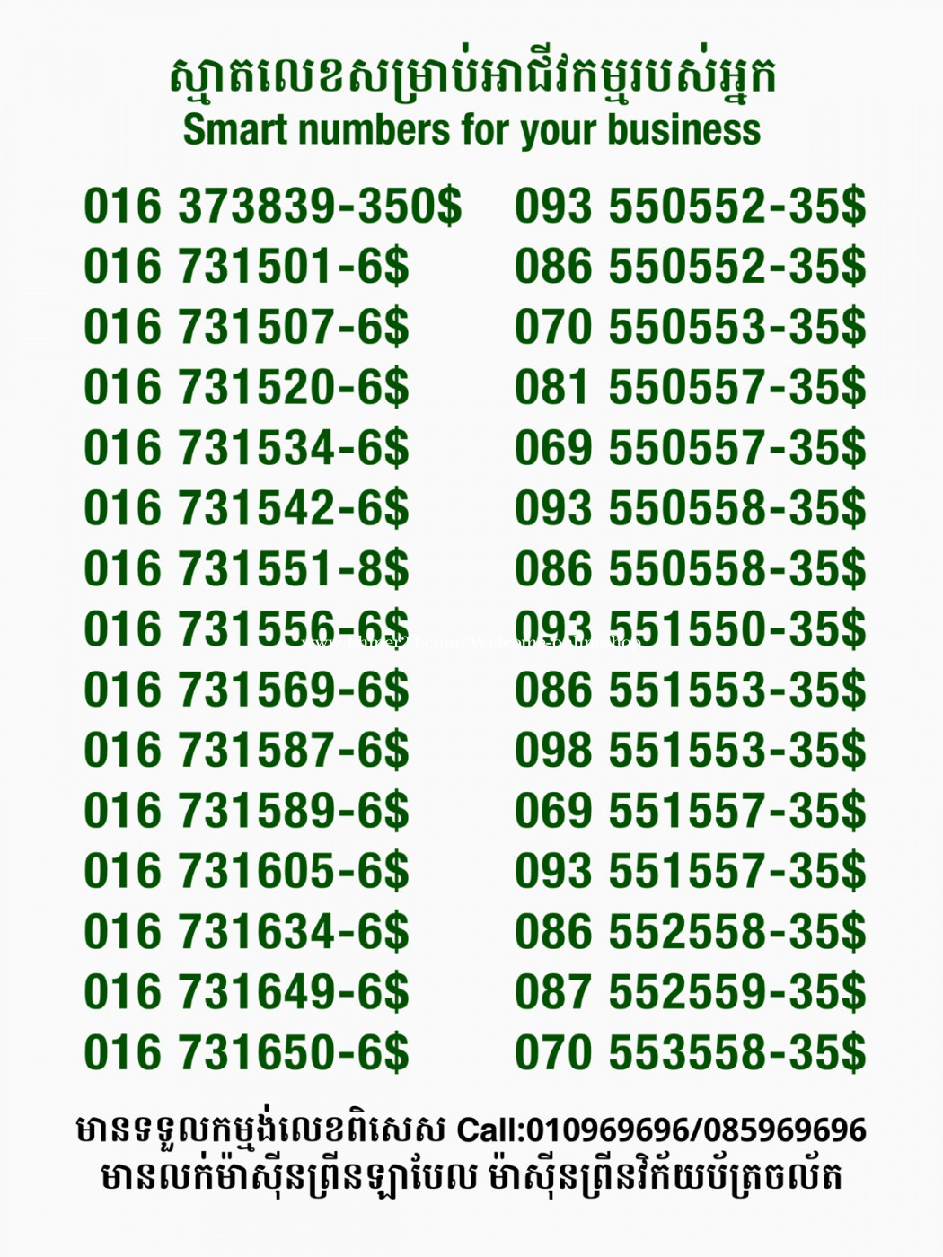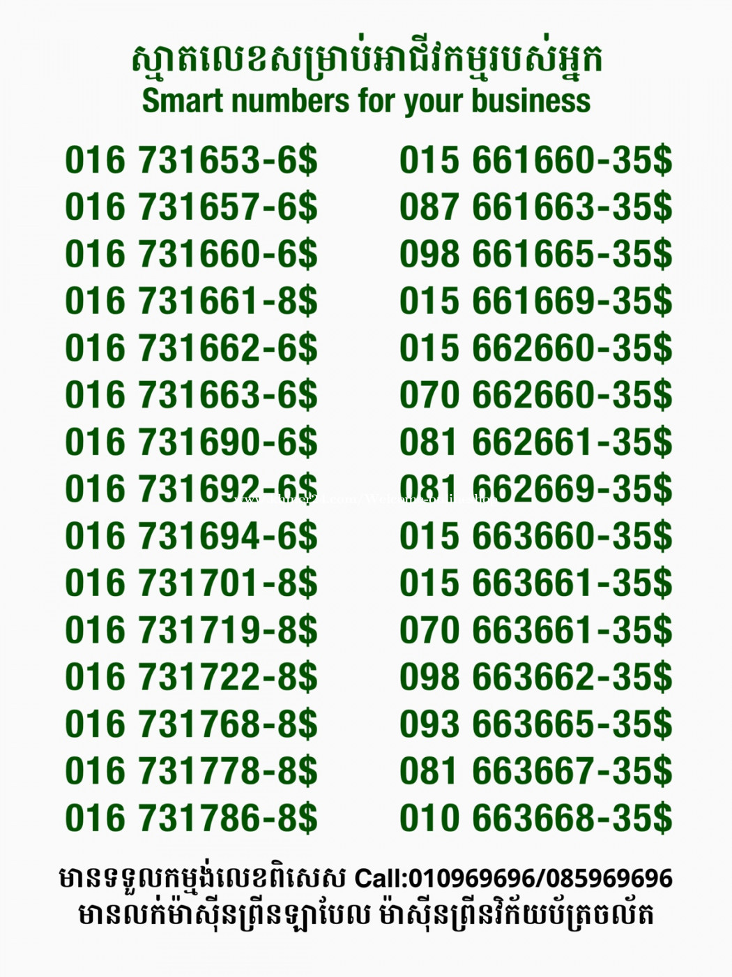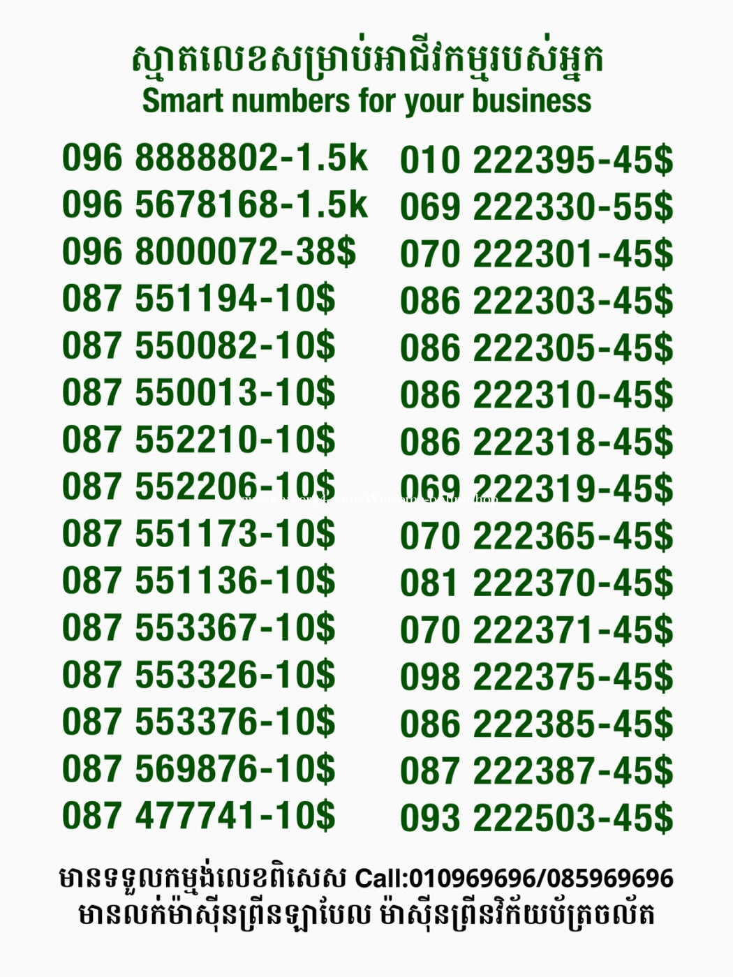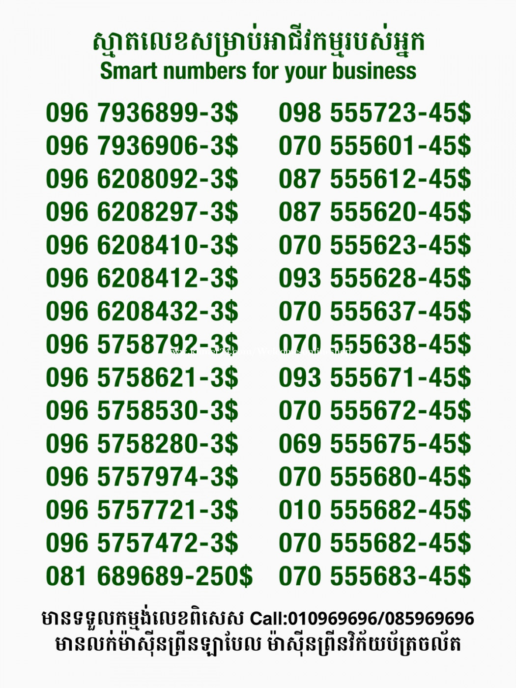 មានលក់លេខពិសេស មានទទួលកម្មង់លេខពិសេស មានលក់ម៉ាស៊ីនព្រីនឡាបែល មានលក់ម៉ាស៊ីនព្រីនវិក័យប័ត្រ មានលក់សម្ភារៈប្រើប្រាស់ក្នុងគ្រួសារ Smart Prime II 1=30$ Smart hero 1=40$ ទូរសព្ទថ្មីក្នុងប្រអប់ លក់ធូរៗរហូតអស់ពីស្តុក អាចប្រើជាឧបករណ៍សម្រាប់ស៊ែរ wifi បាន ទំនាក់ទំនង(ខ្មែរ | English | 中文):010969696 | 085969696 Telegram: https://t.me/W9696 Telegram group: https://t.me/konkonnada អាសយដ្ឋាន:ផ្ទះលេខ២៣ ផ្លូវបេតុងលេខ១ ភូមិទួលពង្រ សង្កាត់ចោមចៅ ខណ្ឌពោធិ៍សែនជ័យ រាជធានីភ្នំពេញ ទីតាំង https://goo.gl/maps/8moqW4iTHUfJEvWQ9 ដើម្បីស្វែងរកលេខអាជីវកម្មដែលលោកអ្នកពេញចិត្ត សូមចូលទៅកាន់:https://www.khmer24.com/Welcome-onlineshop