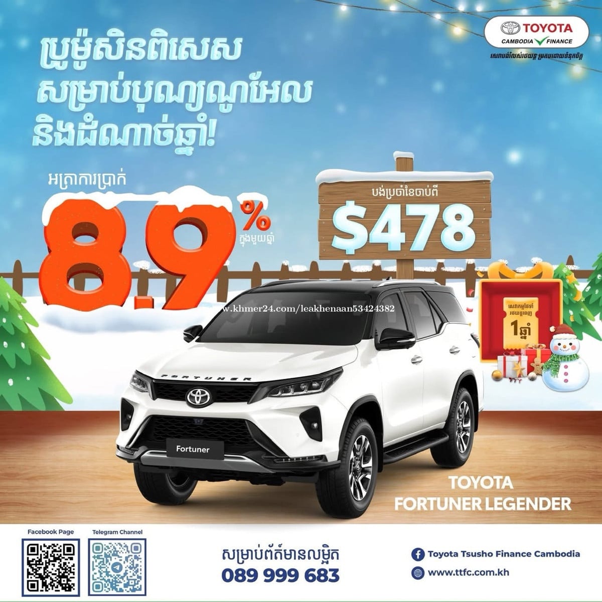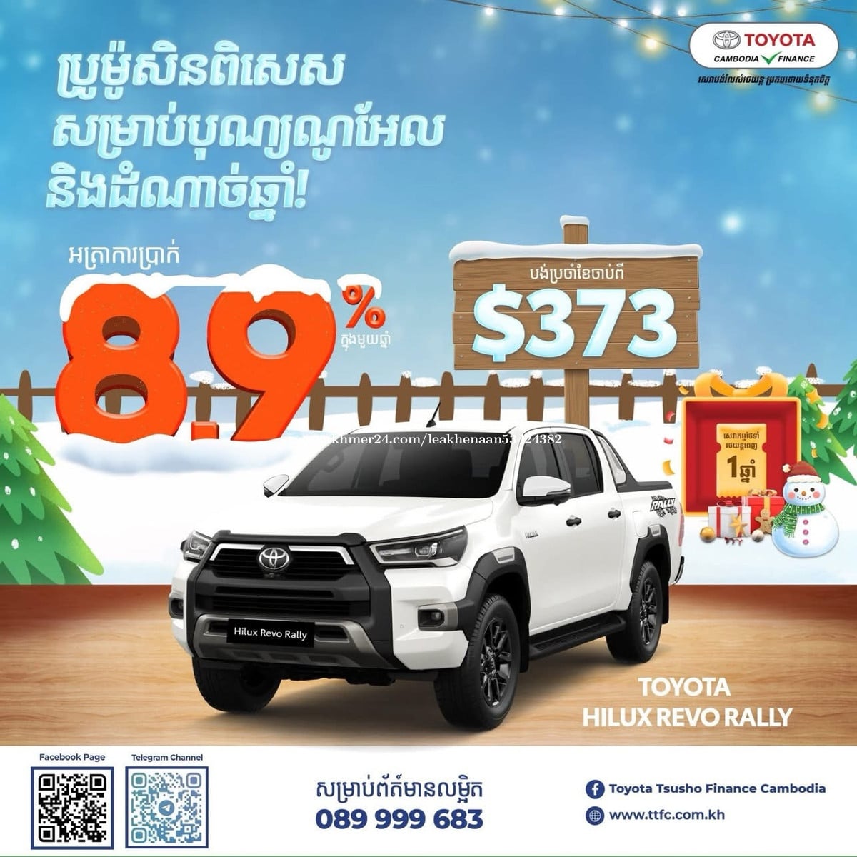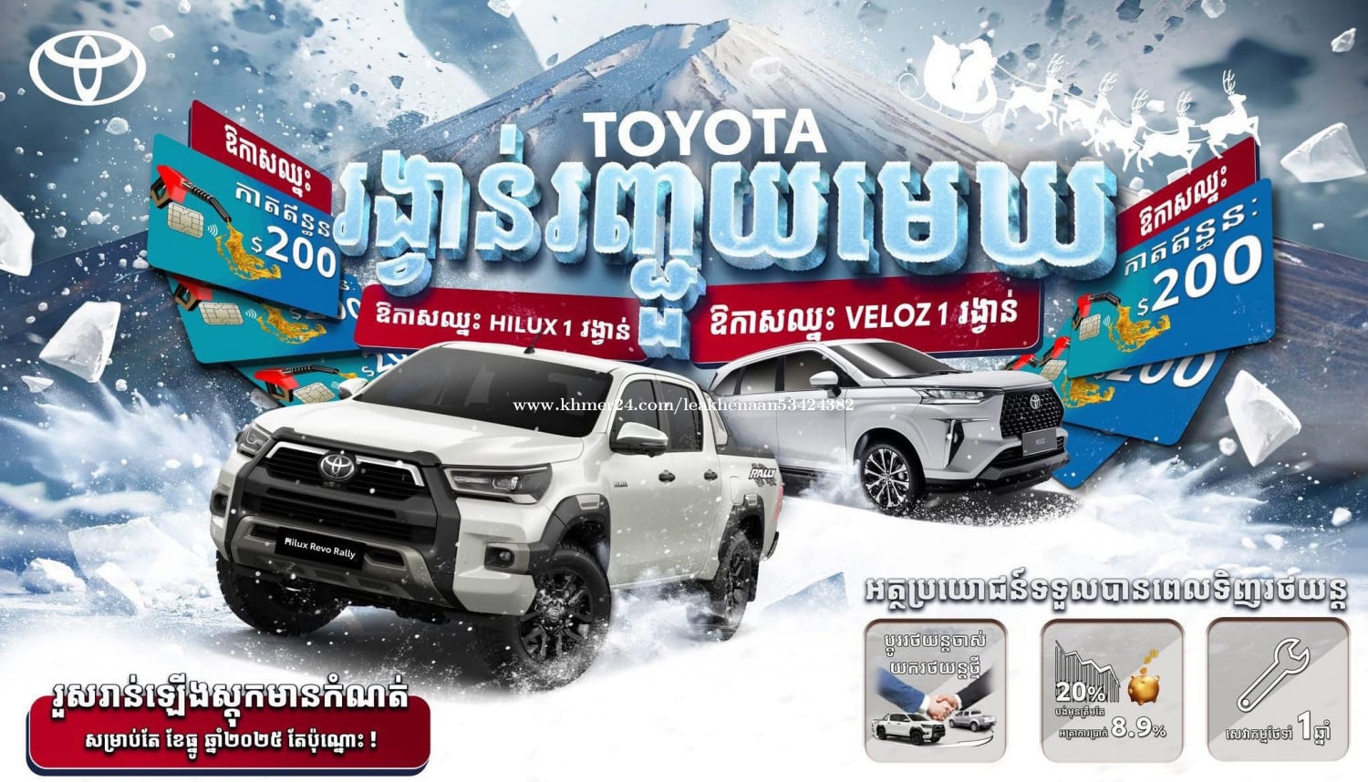 🌺ឈ្នះរង្វាន់រថយន្ត𝟐គ្រឿង សំរាប់ខែធ្នូ!🌺 ឈ្នះរង្វាន់រថយន្ត 𝐑𝐞𝐯𝐨 𝐑𝐚𝐥𝐥𝐲 និងរថយន្ត 𝐕𝐞𝐥𝐨𝐳 រាល់ការជាវរថយន្ត𝐓𝐨𝐲𝐨𝐭𝐚 ម៉ូដែលណាមួយលោកអ្នកនឹងទទួលបាន 🎁ទទួលបានសន្លឹកឆ្នោត ផ្សងសំណាងឈ្នះរថយន្ត𝟐គ្រឿង 🎁សាច់ប្រាក់ $𝟏,𝟎𝟎𝟎 សម្រាប់ការដោះដូររថយន្ដចាស់ 🎁ការប្រាក់ 𝟎.𝟕𝟒% ក្នុងមួយខែ 🎁ហ្វ្រីប្ដូរប្រេងម៉ាស៊ីនមួយឆ្នាំពេញ (𝟒ដង) 🎁ហ្វ្រីឆៀក ហ្វ្រីស្លាកលេខ ហ្វ្រីកម្រាលជេីង 🎁ធានារយៈពេល 𝟑ឆ្នាំ ឫក៏ 𝟏𝟎𝟎,𝟎𝟎𝟎𝐊𝐦 📞 ❤︎សាកសួរព័ត៌មានបន្ថែមពីផ្នែកលក់អនឡាញ: ☎️ 𝟬𝟭𝟳 𝟯𝟯𝟯 𝟱𝟬𝟯/ 𝟬𝟵𝟲 𝟰𝟮𝟮 𝟳𝟴𝟵𝟮 📩ផ្ញើសារមកកាន់Pageនាងខ្ញុំ 📩 𝗧𝗲𝗹𝗲𝗴𝗿𝗮𝗺: https://t.me/Leakhena_ToyotaCambodia #Toyota #ToyotaCambodia #Promotion