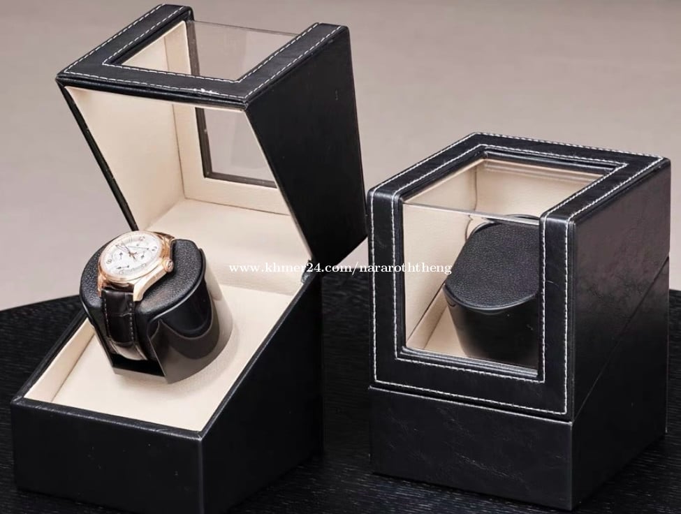 ប្រអប់នាឡិកាអូតូ 1ប្រឡោះ - ប្រភេទស្បែក - រង្វិលតាមទ្រនិចនាឡិកា - ប្រើឌុយ - Free Delivery ភ្នំពេញ