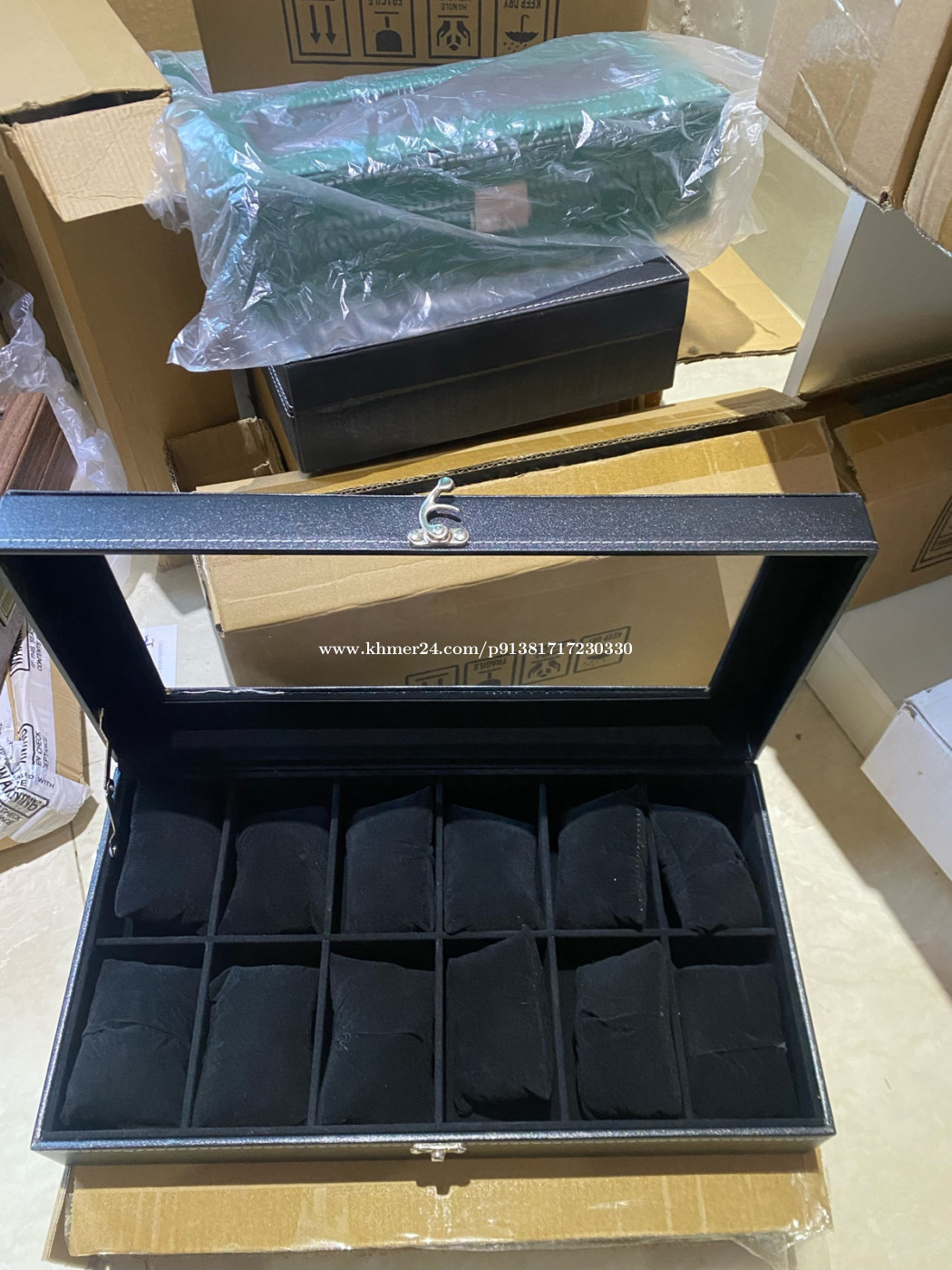 ប្រអប់នាឡិកា 12 ថត black lover | Watch Box | បងៗណាស្រឡាញ់ខ្មៅត្រូវម៉ាច់ តម្លៃ 16$ Join Telegram channel Free ដឹកបងៗ សម្រាប់ការកម្មង់អាចឆាត ឬ ខល 010739xxxClick To Call(smart) តេឡេក្រាម 093219xxxClick To Call Channel telegram t.me/Kdonlinecambodia #watch #watchboxorganizer #organizer