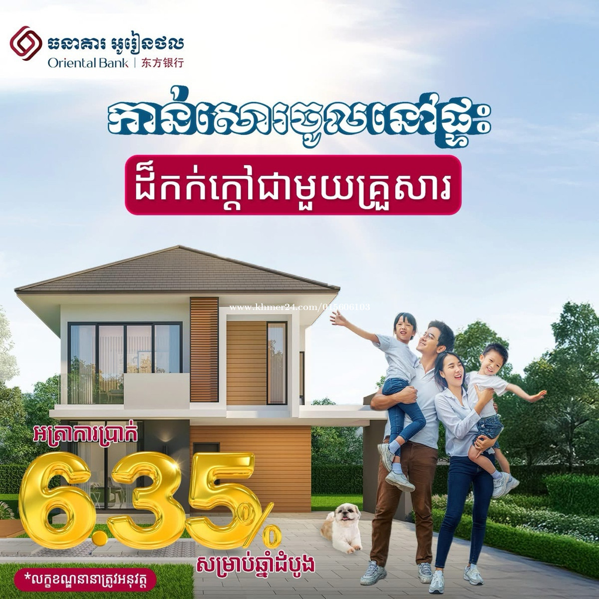 Housing Loan សិក្សាកម្ចី ជាមួយអត្រាការប្រាក់ពិសេស ចាប់ពី 0.53% ក្នុងមួយខែ ព្រមទាំងទំហំកម្ចីរហូតដល់ 80%នៃតម្លៃផ្ទះ រយៈពេលកម្ចីរហូតដល់20ឆ្នាំ ការសិក្សាអនុម័តលឿន សេវាកម្មល្អប្របកដោយវិជ្ជាជីវៈ ទំនុកចិត្តខ្ពស់ ភាពជឿជាក់ និងរក្សាការសម្ងាត់ជូនអតិថិជន ធនាគារ ក៏មានផ្តល់ជូននៅសេវាកម្មដូចជា: 🏠កម្ចី ផ្តាច់ពីធនាគារផ្សេង 🏠កម្ចីបង់ផ្តាច់ ជាមួយបុរី 🏠កម្ចីសាងសង់ផ្ទះ ឬទិញអគារពាណិជ្ជកម្ម 🏠និង គោលបំណងឯកជនជាច្រើនទៀត 👉សម្រាប់ពត៍មានលម្អិតបងៗអាចទំនាក់ទំនងតាមរយៈ៖ Tel : Smart 015606xxxClick To Call