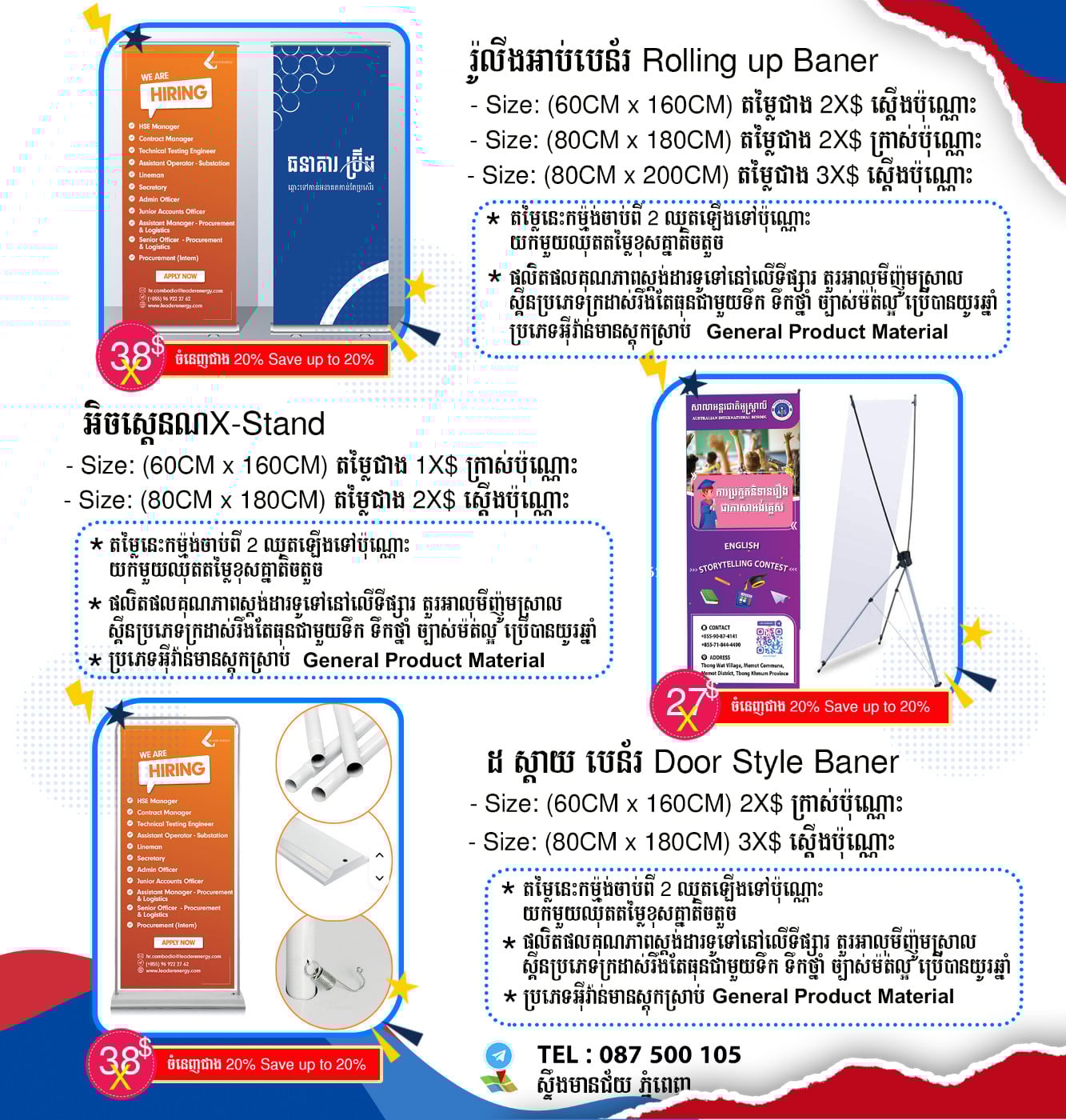 ប្រូម៉ូសិនបញ្ចុះតម្លៃទៅលើការព្រីនខ្នាតធំ​ នឹងសំភារះតាំងបង្ហាញគ្រប់ប្រភេទ