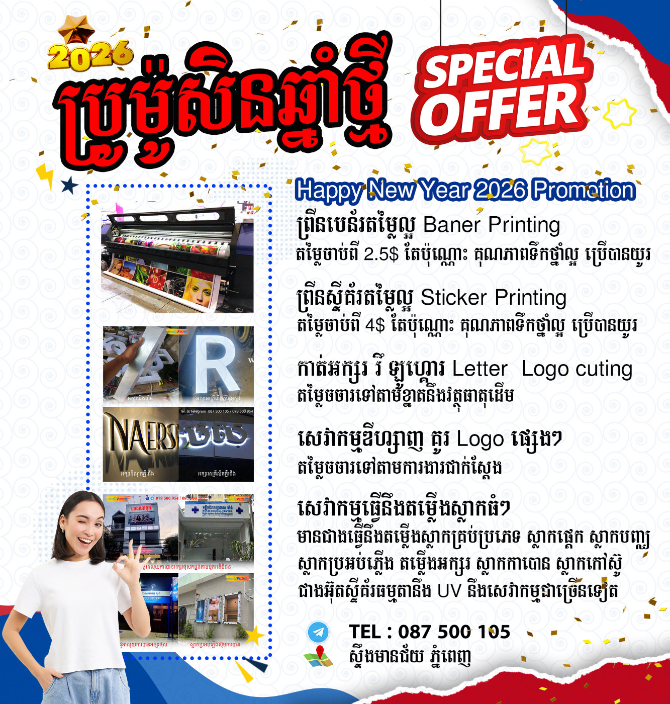 ប្រូម៉ូសិនបញ្ចុះតម្លៃទៅលើការព្រីនខ្នាត សំភារះតាំងបង្ហាញគ្រប់ប្រភេទ