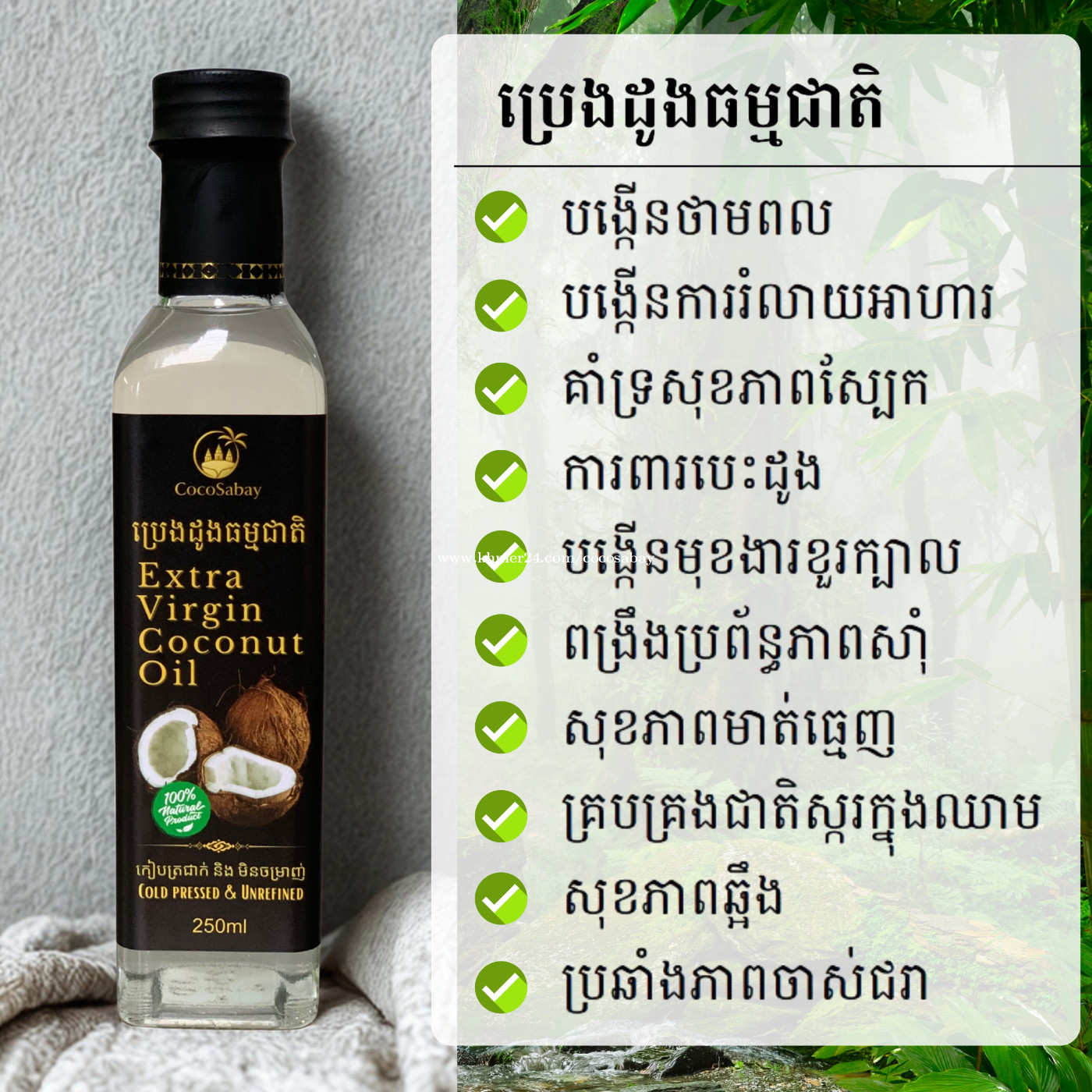 [English Below] 🇰🇭 ពេលនេះប្រេងដូងសុទ្ធមកពីខេត្តកំពត ត្រឹមតែប្រាំពីរដុល្លារតែប៉ុណ្ណោះ។ 🥰 🥥 កំពុងស្វែងរក ប្រេងដូងធម្មជាតិល្អបំផុតនៅកម្ពុជា? ✅ បរិសុទ្ធ 100% – គ្មានសារធាតុគីមី ✅ បំពង់ដោយដៃ និងក្រឡុកត្រជាក់ នៅខេត្តកំពត ✅ ល្អសម្រាប់ចម្អិនអាហារ 🍳 ស្បែក ✨ និងសក់ 💆♀️ ✅ ទទួលស្គាល់ដោយគ្រួសារជាច្រើនទូទាំង 🇰🇭 ❤️ ចែករំលែកទៅកាន់មិត្តភក្តិដែលស្រឡាញ់ផលិតផលធម្មជាតិ 🌴 🇰🇭 Now, pure coconut oil from Kampot province is only $7🥰 🥥 Looking for the best coconut oil in Cambodia? ✅ 100% natural – no chemicals ✅ Fermented & cold-pressed in Kampot ✅ Perfect for cooking 🍳 skin ✨ and hair 💆♀️ ✅ Trusted by families across 🇰🇭 ❤️ Share with someone who loves clean, natural products 🌴 Delivery / ការដឹកជញ្ជូន - $1,5