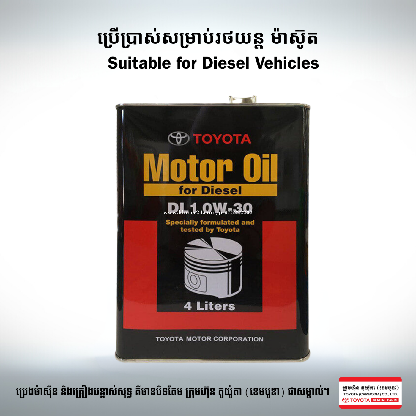 ប្រេងម៉ាស៊ីន TOYOTA បង្កើតឡើងយ៉ាងពិសេសសម្រាប់រថយន្ដ TOYOTA ដែលប្រេ់ប្រាស់ DPR / DPF ✅ សមស្របសម្រាប់រថយន្តម៉ាស៊ូតដែលមានប្រព័ន្ធ DPR / DPF ✅ ប្រេងម៉ាស៊ីនដែលមានកម្រិត JASO DL-1 ✅ បង្កើនការការពារម៉ាស៊ីន និងការពារភាពសឹករិចរិលបានយ៉ាងល្អបំផុត ✅ ពន្យាអាយុកាលម៉ាស៊ីន និងសន្សំប្រេងឥន្ធនៈ 📦 បរិមាណ 4 លីត្រ | Made for both Diesel Vehicles 🛠️ ប្រើប្រាស់ដោយភាពជឿជាក់ ពី TOYOTA CAMBODIA ☎️ សម្រាប់ព័ត៌មានបន្ថែម និងចែកចាយបន្ដ សូមទាក់ទង ៖ 0975222xxxClick To Call (Metfone) 017333xxxClick To Call (Cellcard) 0964442xxxClick To Call (Smart) ឬតាមរយៈ Telegram https://t.me/ToyotaCambodiaOilDistributor ‼️ ប្រេងម៉ាស៊ីន និងគ្រឿងបន្លាស់សុទ្ធ គឺមានបិទតែម ក្រុមហ៊ុន តូយ៉ូតា (ខេមបូឌា) ជាសម្គាល់