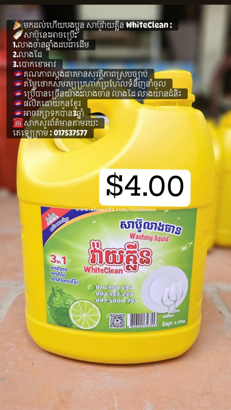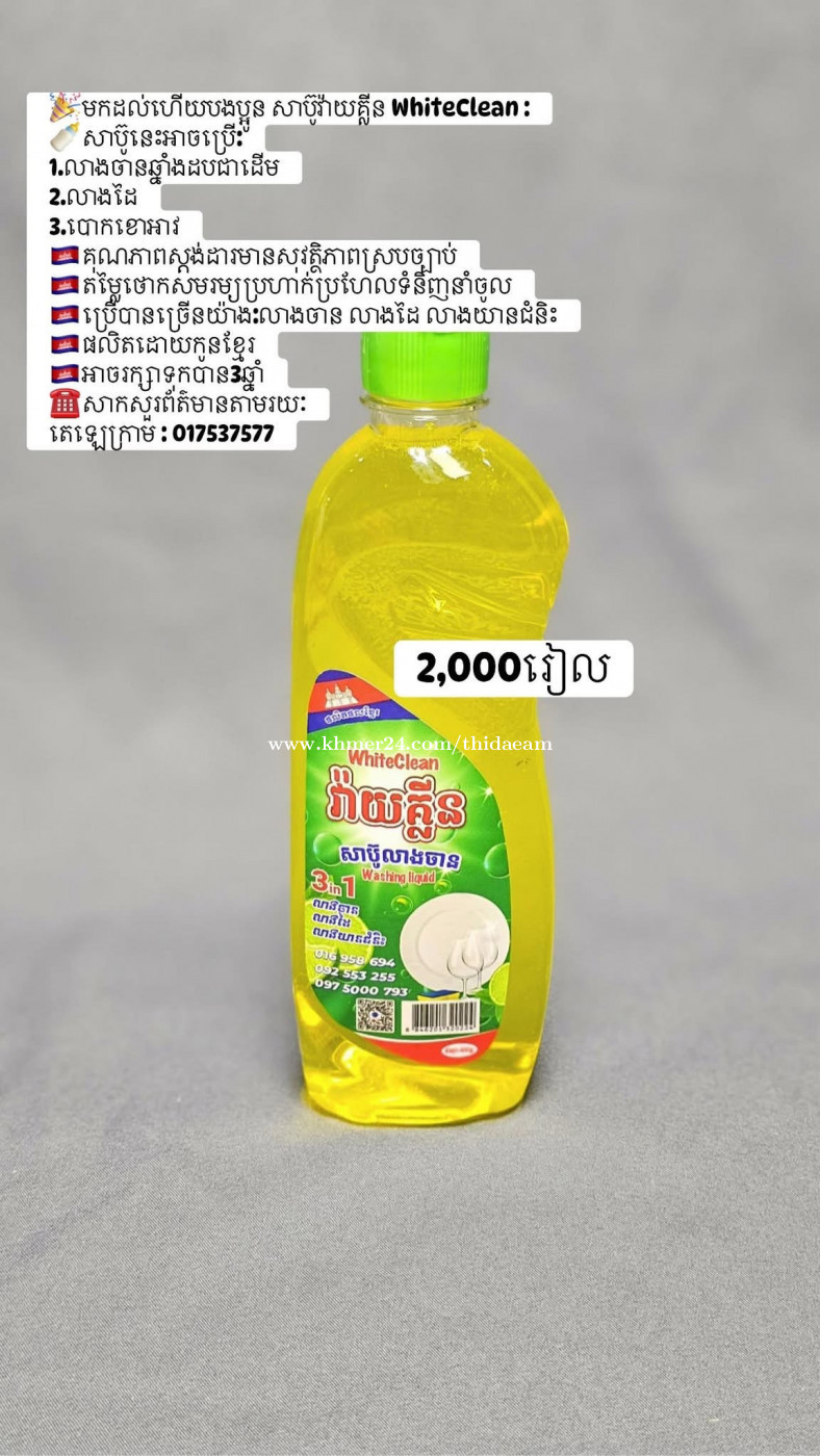 សូមជួយគាំទ្រផលិតផលក្នុងស្រុកបងប្អូន! សាប៊ូ WhiteClean អាចប្រើបានដល់ទៅបីមុខ 🍋លាងចានក៏បាន 🍋 លាងដៃក៏បាន 🍋 ហើយពិសេសទៀតបោកខោអាវបានទៀត
