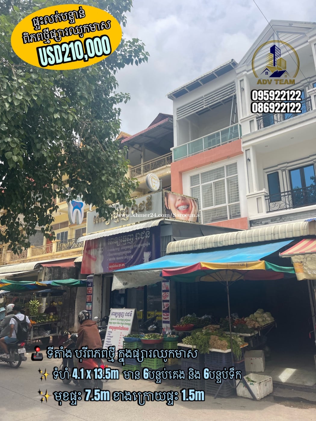 🏦 ផ្ទះអាជីវកម្មនៅផ្សារឈូកមាស E0,E1,E2 ក្នុងបុរីពិភពថ្មី មានចំណូលស្រាប់ $530/ខែ លក់តំលៃ $210,000 ចរចារ (តំលៃទីផ្សារជិត 30មុឺន) ✨ ទំហំផ្ទះ៖ 4.1m x 13.5m ✨ បន្ទប់គេង 6 l បន្ទប់ទឹក 6 ✨ មុខផ្ទះ 7.5m ក្រោយផ្ទះ 1.5m 👉កាត់ឈ្មោះជូន ប្លង់រឹង 🕹️ ទីតាំង : ស្ថិតនៅបុរីពិភពថ្មីឈូកមាស ផ្លូវបឹងឈូក សង្កាត់ក្រាំងធ្នង់ សែនសុខ ភ្នំពេញ ផ្ទះនៅជាប់ផ្សារ រកសុីអីក៏បាន តំបន់អូអរសាលារៀនអន្តរជាតិធំៗជាច្រើន ងាយស្រួលសំរាប់ប្រកបអាជីវកម្មគ្រប់ប្រភេទ ☎️ 095922xxxClick To Call (Telegram) Code: SH-00062 Telegram: https://t.me/saroeun_avd