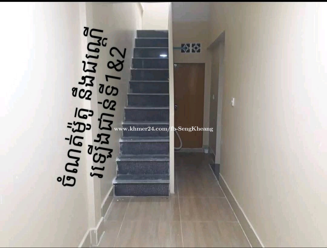 មានផ្ទះជួលជាន់ទី1 មាន2បន្ទប់ បន្ទប់ទឹក2 មានចំណត់ម៉ូតូ ដាក់បាន3គ្រឿង