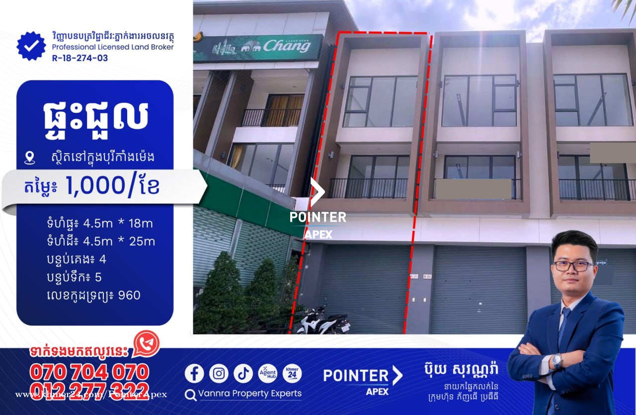 ផ្ទះជួលនៅបុរីកាំងម៉េង ផ្លូវជាតិលេខ2 សម្រាប់ជួល:$1,000/ខែ ទំហំផ្ទះ4.5m x 18m ទំហំដី:4.5m x 25m បន្ទប់គេង:4 បន្ទប់ទឹក:5 🔐លេខកូដអចលនវត្ថុ៖ 960 ស្ថិតនៅលើផ្លូវជាតិលេខ2សង្កាត់ព្រែកកំពឹសខណ្ឌដង្កោ ភ្នំពេញ ——————————— ទាក់ទងមកឥលូវនេះ៖ Call: 070704xxxClick To Call / 012277xxxClick To Call Telegram: https://t.me/vannraaa 微信号: vannra-experts - Channel: https://t.me/vannrapropertyexperts - Tiktok: https://www.tiktok.com/@vannra_property_experts - Facebook: https://www.facebook.com/vannra.phnompenh.property/