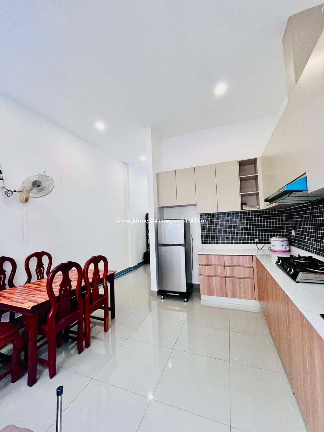 ផ្ទះមាន ម៉ាសុិន ត្រជាក់ ទូរទឹក កក នឹង សំភារះ ទះបាយ ផ្ប្រើប្រាស់ ស្រាប់