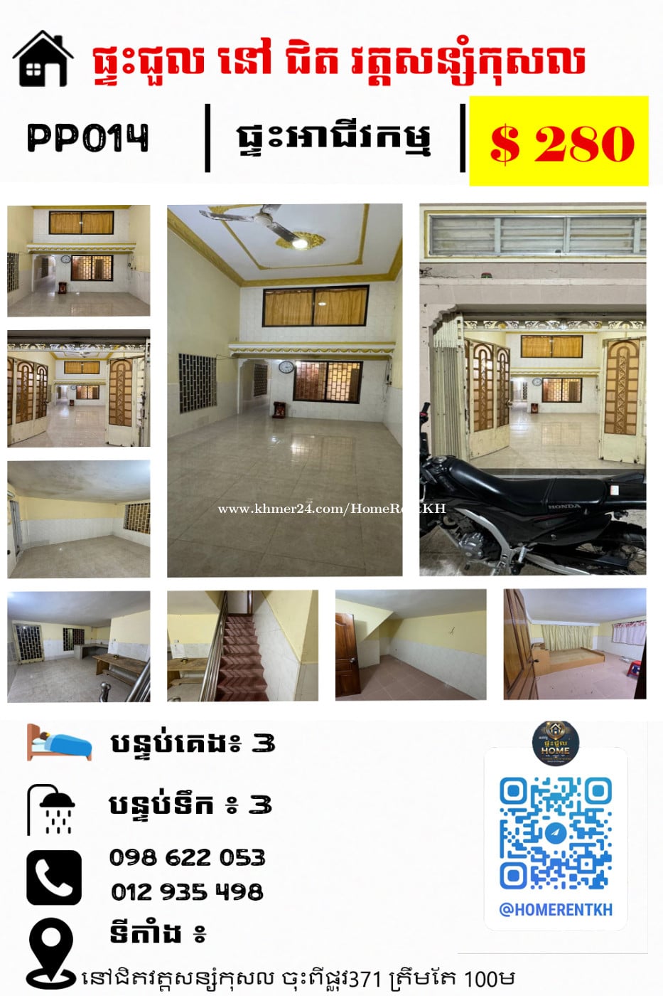 ផ្ទះជួល អាជីវកម្ម នៅជិតវត្តសន្សំកុសល House (Near Wat Sansam Kosal) ផ្ទះស្អាត 🏡 ព័ត៌មានទូទៅ 🛏️ បន្ទប់គេង: 3 🛁 បន្ទប់ទឹក: 3 🏠 ផ្ទះស្អាត ស្អំរលោង 💼 សាកសមសម្រាប់រកស៊ី និងរស់នៅ 💵 តម្លៃជួល: $280/ខែ 📍 Location: ជិតវត្តសន្សំកុសល, Phnom Penh 📞 Tel: 098622xxxClick To Call / 012935xxxClick To Call 📲 Telegram: t.me/homerentkh 🏡 មើលផ្ទះជាច្រើនទៀត: https://t.me/HomeRentKH 🆔 Code: PP014 #HouseForRent #SansamKosal #PhnomPenhRental