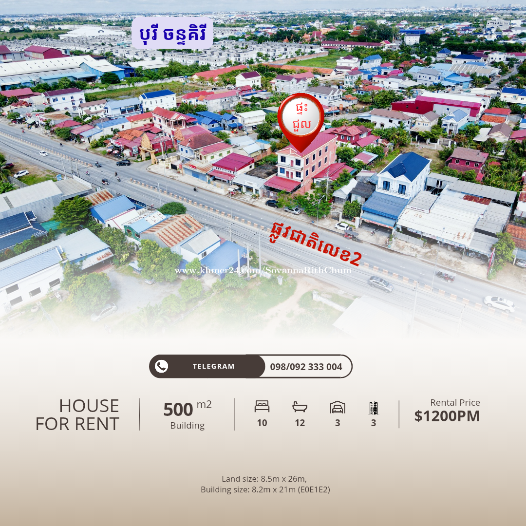 🏠✨ ផ្ទះជួល ២ ល្វែង! ✨🏠 📍 ទីតាំងល្អ ផ្លូវជាតិលេខ ២, ខណ្ឌដង្កោ 📐 ទំហំដី 8.5m x 26m | អគារ 8.2m x 21m (E0E1E2) 🛏️ 10 បន្ទប់ | 12 បន្ទប់ទឹក | ចំណត 3 💼 សាកសមសម្រាប់ សាលារៀន, មន្ទីរព្យាបាល, ហាងកាហ្វេ, ការិយាល័យក្រុមហ៊ុន ... 💰 តម្លៃ $1,200/ខែ (ចរចា) 📞 098/092/068333xxxClick To Call 📩 Telegram: https://t.me/sovannarithchum #ផ្ទះជួល #ដង្កោ #RealEstate #ផ្លូវជាតិលេខ២
