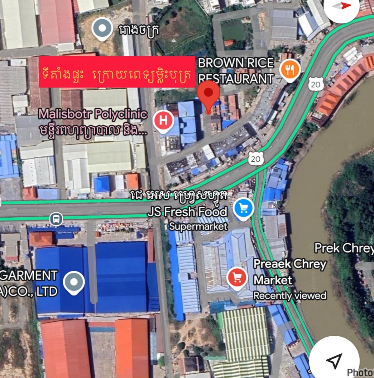 ផ្ទះថ្មី 10mn ពី AEON3 ទីតាំង បាគូ ក្រោយពេទ្យ ម៉ាលីសបុត្រ ជិតផ្សារព្រែកជ្រៃ ជិតរង្វង់មូលគួរស្រូវអាចរកស៊ីបាន តម្លៃចរចា លេខម្ចាស់ផ្ទាល់ (098/300966) ផ្ប្ផ្ឆាតតេលេក្រាមបាន map FV7Q+RQF Phnom Penh (11.4645625, 104889xxxClick To Call9) Near Malisbotr Polyclinic មន្ទីរពហុព្យាបាល និងសម្ភព ម៉ាលីសបុត្រ, Close to Sangkat Preaek Kampues, Phnom Penh https://maps.app.goo.gl/pQwJZKs64z18afUm6?g_st=ipc