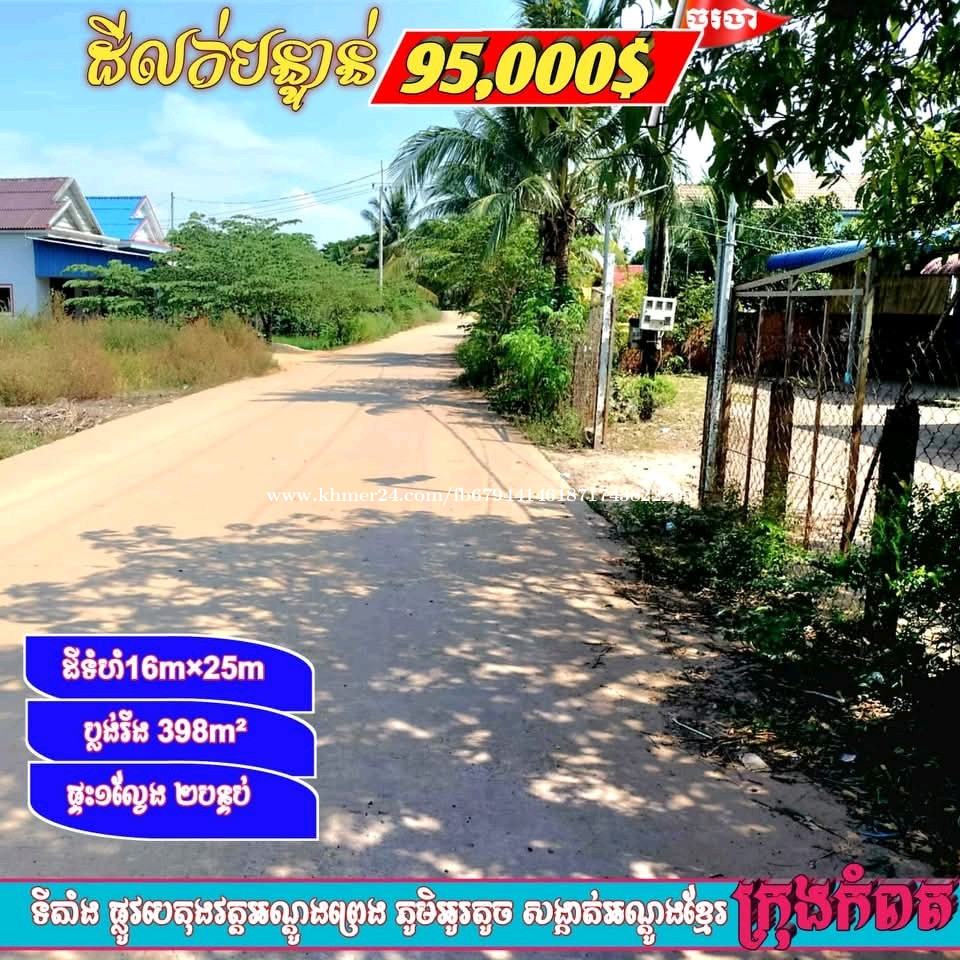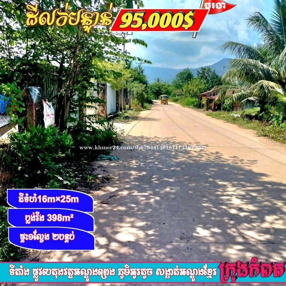 95000$ តម្លៃអាចចរចាបាន ប្រភេទផ្ទះនិងដី ទំហំផ្ទះ 5×18 មាន2បន្ទប់គេងនិងបន្ទប់ទឹក1 ទំហំដី 398m2 មានរបងរួចជាស្រេច ភូមិអូរតូច សង្កាត់ អណ្ដូងខ្មែរ ក្រុងកំពត (ចប់ផ្លូវបេតុង) ចំងាយ ពីរង្វង់មូលទឹករលក800m លក់ក្រោមទីផ្សារ40% បងប្អូនចាប់អារម្មណ៍អាចទំនាក់ទំនងបានតាមលេខខាងក្រោម ម្ចាស់ដីផ្ទាល់ លេខទូរសព្ទ 010778xxxClick To Call 0889215xxxClick To Call