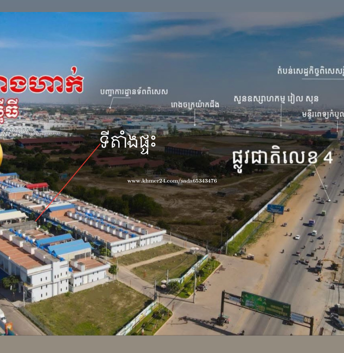 ផ្ទះលក់តម្លៃក្រោមទីផ្សាទីតាំកំបូលជាប់ផ្លូវជាតិលេខ4ទល់មុខបុរីពិភពថ្មីកំបូល1