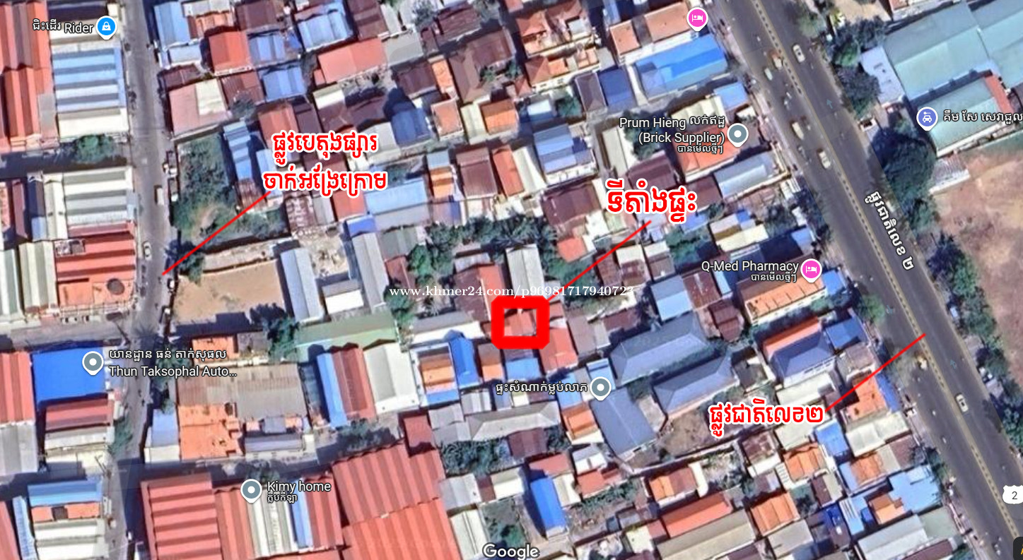 ផ្ទះនៅក្បែរផ្សារចាក់អង្រែក្រោម ជិតសាលារៀន វត្តងាយស្រួលធ្វើដំណើរផ្ទះនៅកណ្តាលក្រុងតំលៃចរចារបាន
