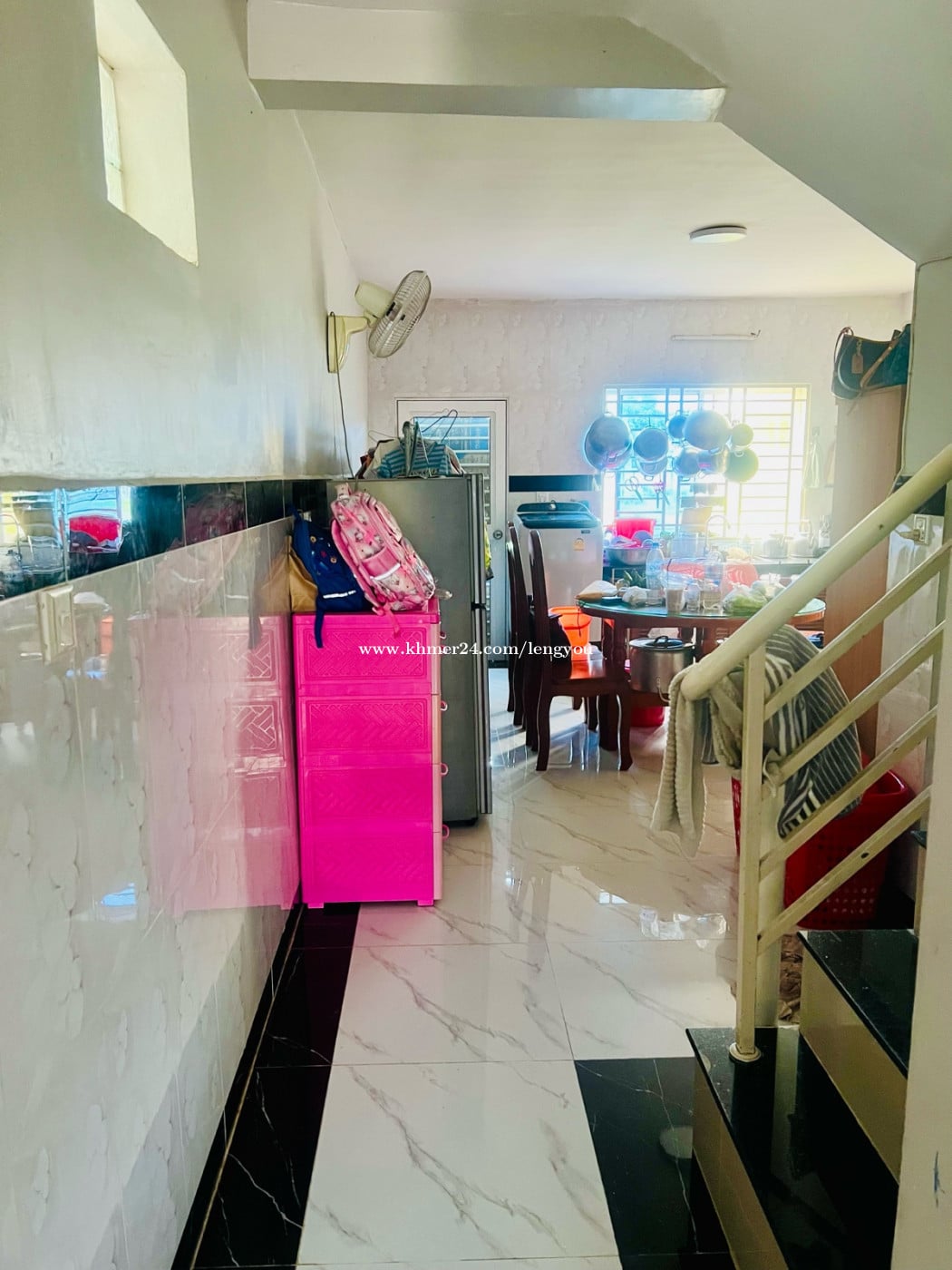 ផ្ទះល្វែងកែងស្អាត មានពីរបន្ទប់គេង និងបីបន្ទប់ទឹក សល់ដីខាងមុខ 5.6ម៉ែត្រអាចដាក់រថយន្ត ខាងក្រោយពីរម៉ែត្រទល់ខ្នង សល់ដីខាងជម្ហៀងផ្ទះពីរម៉ែត្រទល់គ្នា មានដំបូលប្រក់រួចរាល់ មានវាំងននស្រាប់ ម៉ាសុីនត្រជាក់ពីរគ្រឿង អគ្គិសនី 32Ma សុីទែនទឹក 1000លីត្រ ម៉ូទ័រជម្រុញទឹក១ ប្លង់រឹង ក្នុងបុរីតាហោ តម្លៃចរចារ
