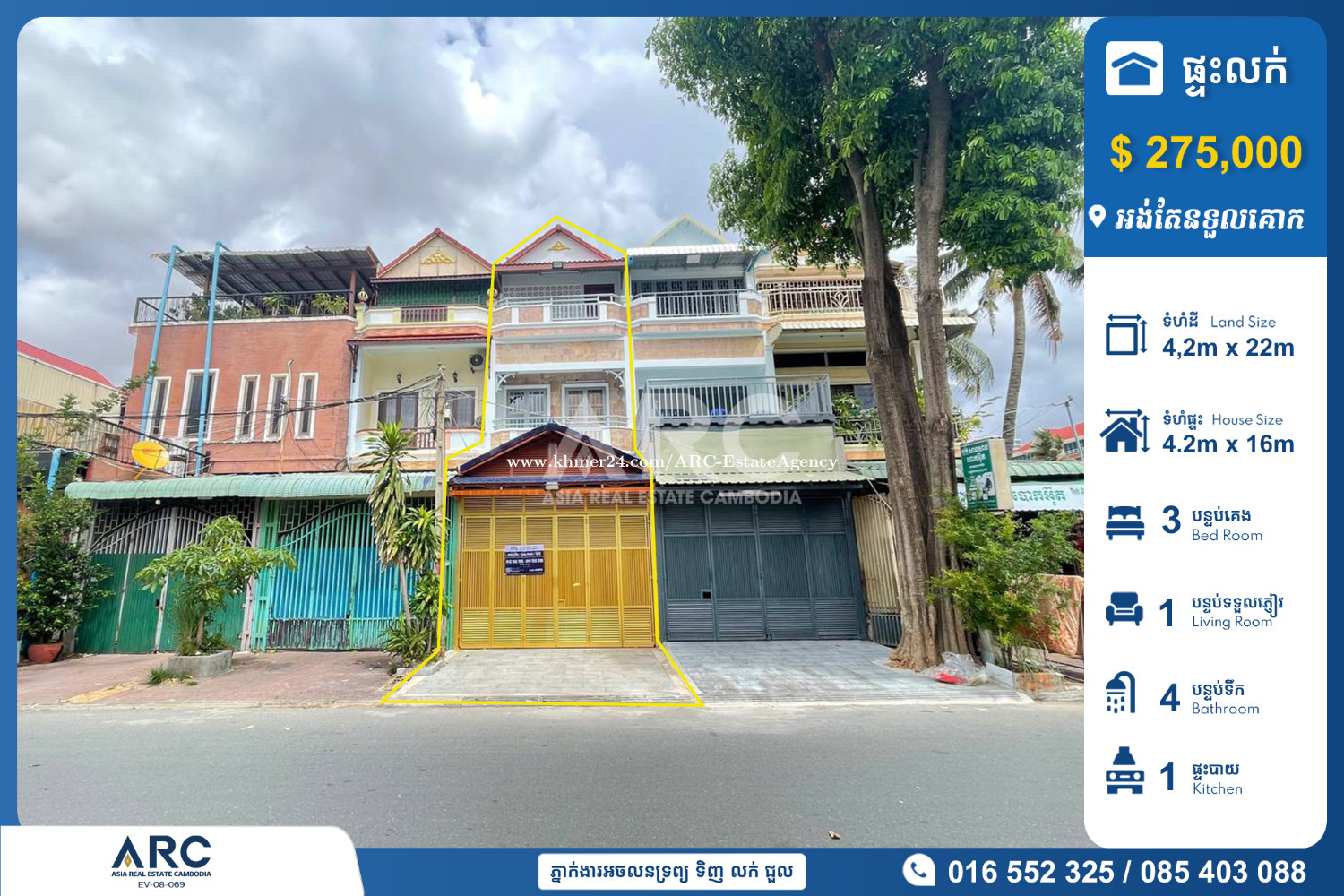 * ផ្ទះលក់ ក្បែរអត់តែនទួលគោក និងក្បែរសាលាប៊ែលធីរង្វង់មូលកាំកូ - តម្លៃលក់ $ 275,000 ចរចា - ផ្ទេរកម្មសិទ្ធិប្លង់រឹង - ទំហំដី: 4,2 x 22m (80m2) - ទំហំផ្ទះ 4,2 x 16m - សល់មុខ៥m - មានបន្ទប់គេង៣ បន្ទប់ទឹក ៤ - ផ្ទះទើបជួសជុលថ្មីស្រឡាង ទិញភ្លាមចូលនៅភ្លាម នឹងរកស៊ីបានភ្លាម - ល័ក្ខខណ្ឌបង់ប្រាក់អាចចរចាបាន - ពត៌មានបន្ថែមសូមទំនាក់ទំនង / For more detail៖ ☎️ 016552xxxClick To Call (Smart) / 085403xxxClick To Call (Cellcard) 👉Chat Telegram: https://t.me/SynaSuy 👉Channel Telegram ARC: https://t.me/AsiaRealEstateCambodia 👉 Website: www.arc.com.kh 👉 អាជ្ញាប័ណ្ណលេខ៖ EV-08-069