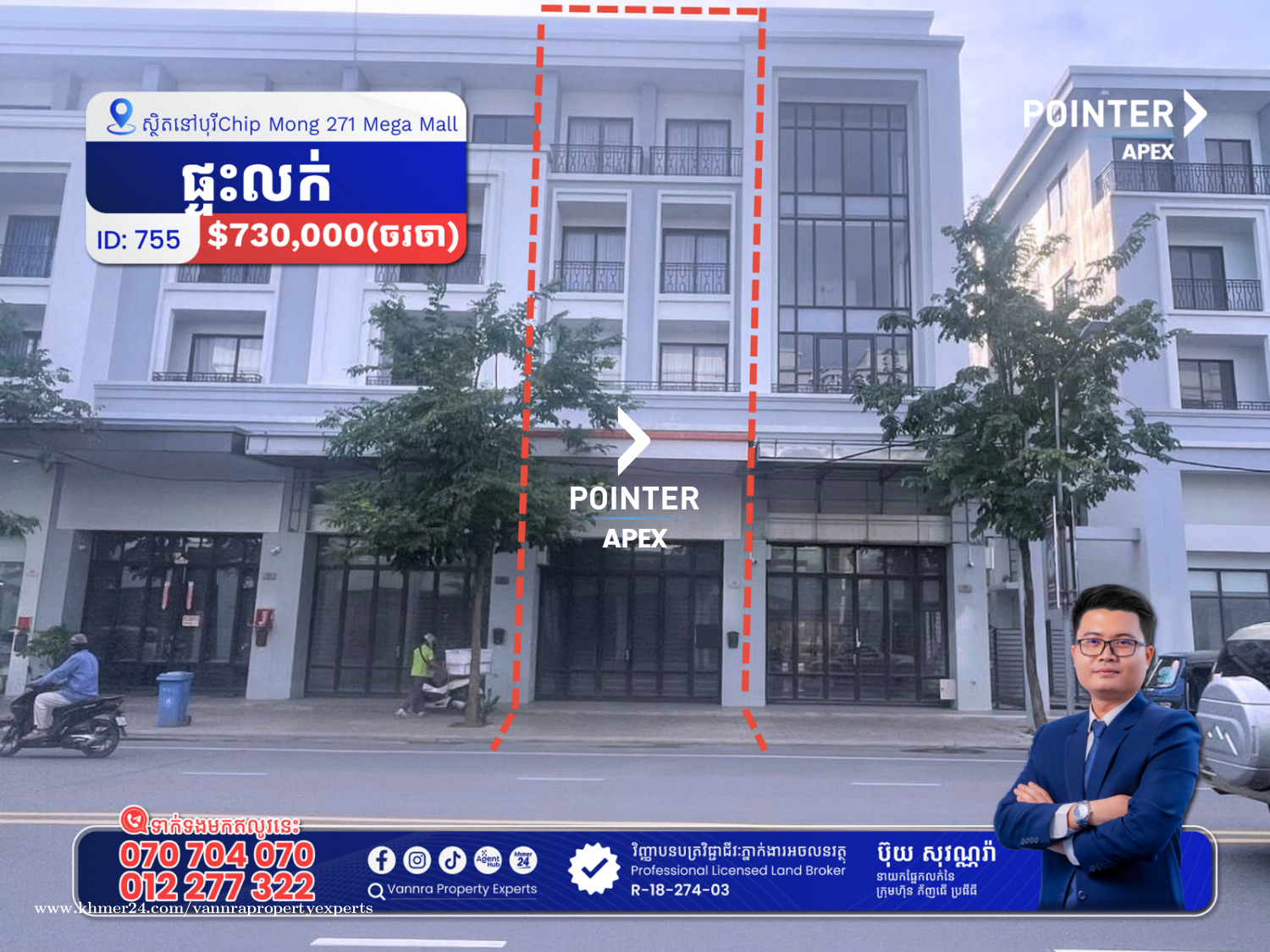 ផ្ទះលក់នៅក្នុងបុរី Chip Mong 271 Mega Mall សម្រាប់លក់:$730,000 ទំហំដី: 5.5m x 24m ទំហំផ្ទះ:5.5m x17m បន្ទប់គេង:7 បន្ទប់ទឹក:8 🔐លេខកូដអចលនវត្ថុ៖ 755 📌 ស្ថិតនៅក្នុងបុរីChip Mong 271 Mega Mall សង្កាត់ចាក់អង្រែលើខណ្ឌមានជ័យ ភ្នំពេញ ——————————— ទាក់ទងមកឥលូវនេះ៖ Call: 070704xxxClick To Call / 012277xxxClick To Call Telegram: https://t.me/vannraaa 微信号: vannra-experts - Channel: https://t.me/vannrapropertyexperts - Tiktok: https://www.tiktok.com/@vannra_property_experts - Facebook: https://www.facebook.com/vannra.phnompenh.property/