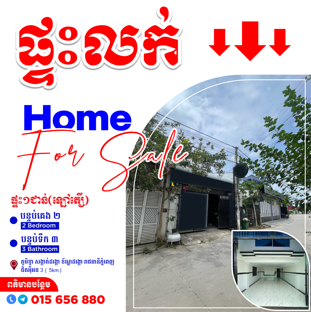 ផ្ទះលក់ | House for sale • បន្ទប់គេង | Bedroom: 2 • បន្ទប់ទឹក | Bathroom: 3 • មុខផ្ទះ | Front of house: 4.70m • ទំហំផ្ទះ | house size: 4.2m x 12m (E0) • ទំហំដី | house size: 5m x 16.7m • លស់ចំហៀងផ្ទះ 0.8m មានជណ្ដើរចហៀង • សម្រាប់គ្រឹះពេលធ្វើ អាចអោយតឡើងបាន 2ជាន់ទៀត »ផ្លង់រឹង 📍ទីតាំង https://maps.app.goo.gl/MCfsWFVDLiydRXZk7?g_st=ic: ផ្ទះលេខ 360 ភូមិខ្វា សង្កាត់ដង្កោ ខ័ណ្ឌដង្កោ ភ្នំពេញ ខាងក្រោយ វិទ្យាល័យទួលអំពិ ជិតបុរីពិភពថ្នីចំដូង ២ ធ្វើដំណើរ 10នាទី ពីផ្សារអុីអន៣ នៅជុំផ្ទះ មាន សាលាខណ្ឌ សាលារៀន បន្ទីពេទ្យ រោងចក្រ ធនាគា ងាយស្រួលរស់នៅ សុខសុភាព បញ្ចាក់ :តម្លៃចរចា ( ម្ចាស់ផ្ទាល់) 75000$
