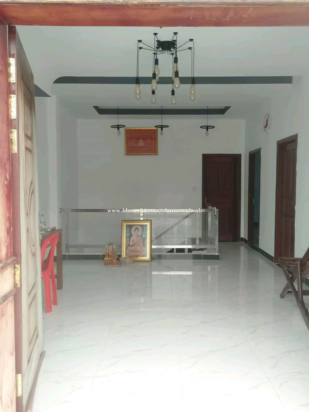 ផ្ទះនៅជិតសាលារៀនមន្ទីពេទ្យនិងវត្ដអារាមជាប់ផ្លូវ ទំហំដី 10m x 18m ទំហំផ្ទះ 8m x 10m ខាងមុខផ្ទះសល់ដី6m ខាងក្រោយសល់ដី2m ជំហៀងផ្ទះសល់ដីម្ខាង1m