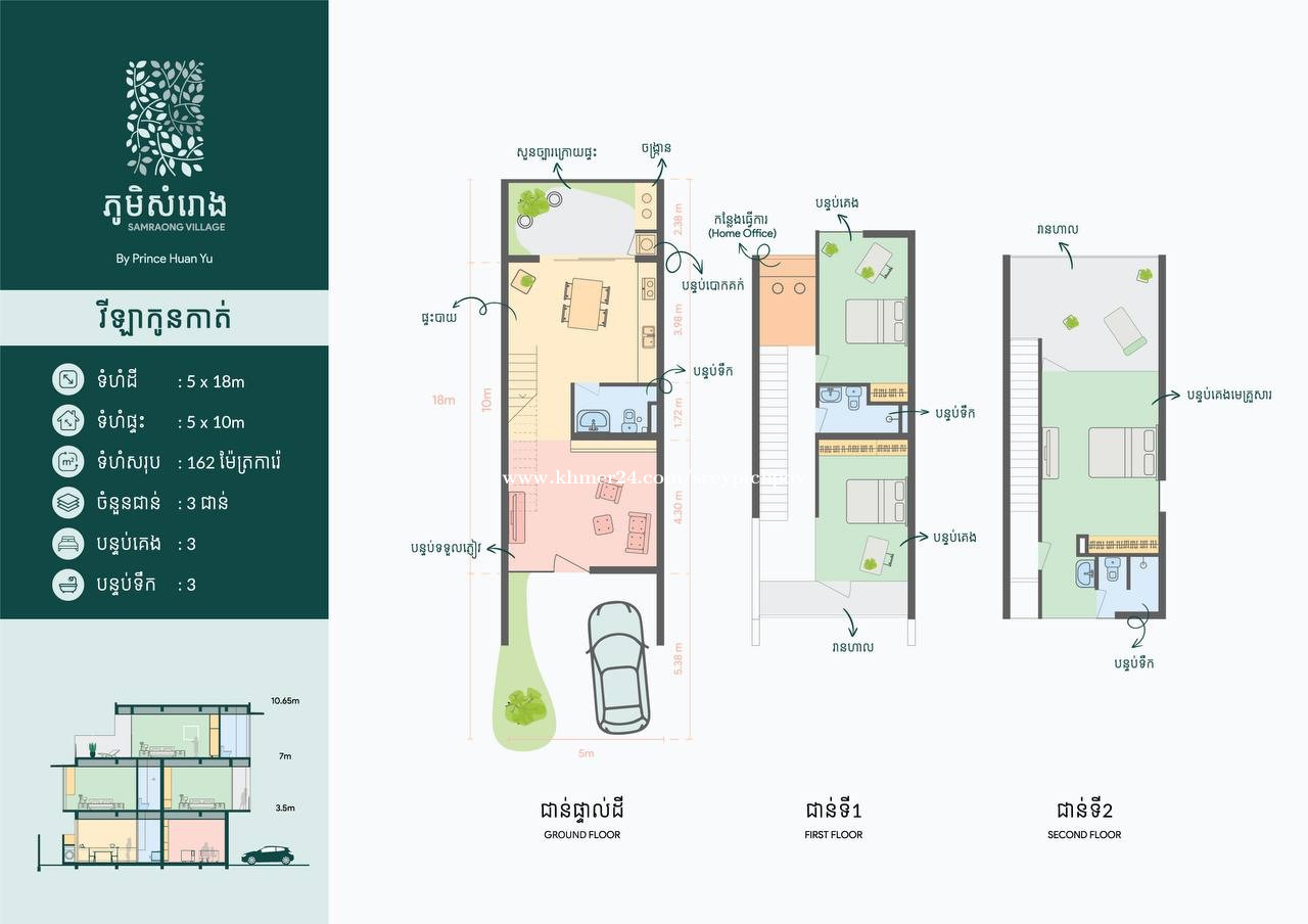 ទំហំសរុប 5x18m ទំហំផ្ទះ 5x10m
