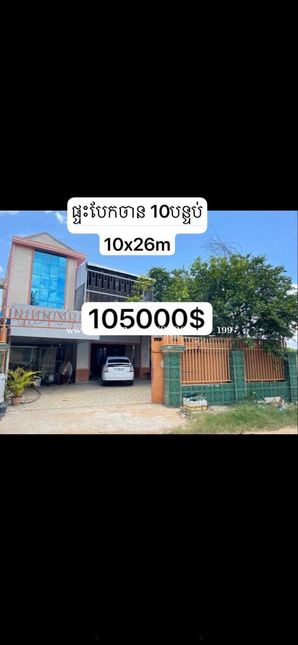 ដីទំហំ 10*26 ផ្ទះទំហំ 10*20 បន្ទប់គេង 10 បន្ទប់ទឹក4 មានទីធ្លាមុខចតឡានធំទូលាយ និងនៅចំហៀងផ្ទះសល់1.5ម ប្រភេទ៖ប្លង់រឹង ទីតាំង៖ ក្រោមផ្សារបែកចាន ផ្លូវក្រវ៉ាត់ក្រុង (ផ្លូវ៤១) បញ្ជាក់៖លក់ខាត10000$ តម្លៃត្រឹមតែ88000$នៅចរចារបានទៀត ហេីយកាត់ប្លង់រឹងជូន។ ម្ចាស់ផ្ទះត្រូវសងបំណុលគេ