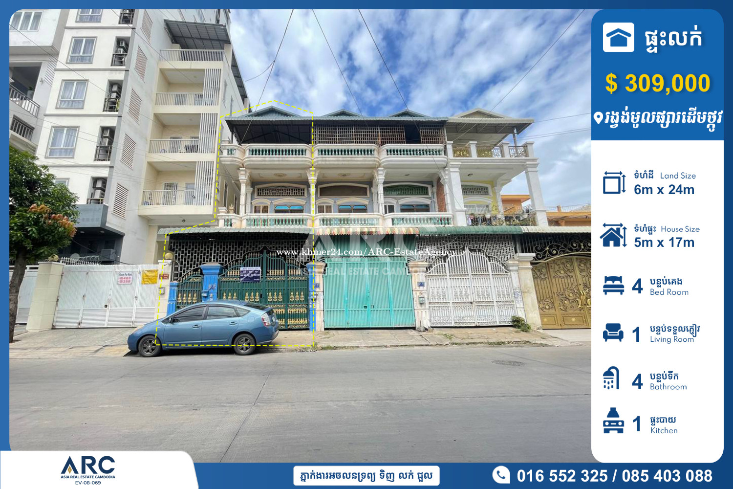 * ផ្ទះលក់ ក្បែររង្វង់មូលផ្សារដើមថ្កូវ (ចុះពីផ្លូវ២៧១ 100m) - តម្លៃលក់៖ $ 309,000 ចរចា (តម្លៃក្រោមទីផ្សារ) - ផ្ទេរកម្មសិទ្ធិប្លង់រឹង - ទំហំដី៖ 6m × 24m - ទំហំផ្ទះ៖ 5m × 17m - បន្ទប់គេង៖ 4 បន្ទប់ទឹក៖ 4 - ផ្ទះលក់បន្ទាន់ទីតាំងល្អលើផ្លូវមេ អាចរកស៊ីបានមានចំណូលខ្ពស់។ - ពត៌មានបន្ថែមសូមទំនាក់ទំនង / For more detail៖ ☎️ 016552xxxClick To Call (Smart) / 085403xxxClick To Call (cellcard) 👉Chat Telegram: https://t.me/SynaSuy 👉Channel Telegram ARC: https://t.me/AsiaRealEstateCambodia 👉 Website: www.arc.com.kh 👉 អាជ្ញាប័ណ្ណលេខ៖ EV-08-069 #ផទះលក់នៅផ្សារដើមថ្កូវ