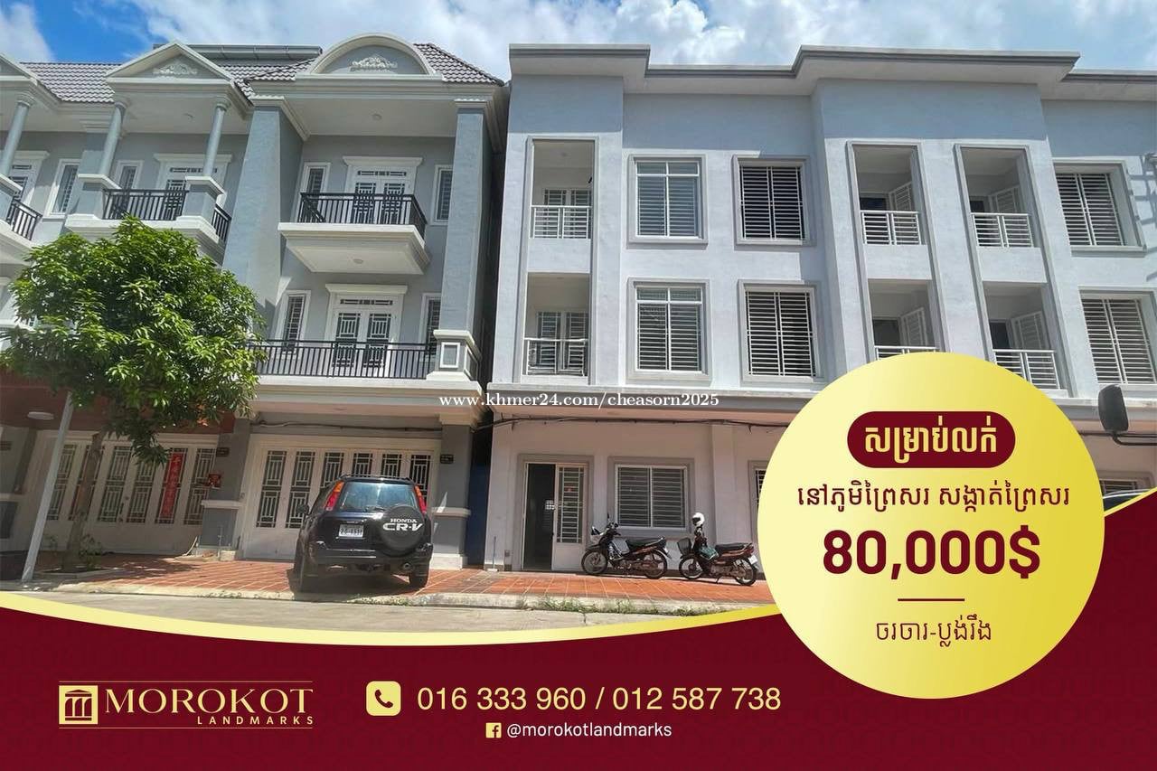 🏠 ផ្ទះលក់ #បន្ទាន់ខ្លាំង #100mពីផ្លូវព្រៃសរ 👉 តម្លៃ 80,000$ (ចរចាបាន) ⛳️ ទីតាំងល្អ នៅភូមិព្រៃសរខាងកើត សង្កាត់ព្រៃសរ ខណ្ឌដង្កោ ការរស់នៅមាន សុវត្ថិភាព ផាសុខភាព និង ពោរពេញទៅដោយគម្រោង ធំៗ មានទីប្រជុំជន អ៊ូអរ ជិតផ្សារ សាលារៀន ប្រកបអាជីវកម្មផ្សេងៗ 👉 មានប្រពន្ទ័ទឹកស្អាត និងភ្លើង20A 👉 ផ្លូវបេតុងទទឹង8m មិនទាល់ ល្អសម្រាប់រស់នៅ 👉 ទំហំដី 5m x 20m 👉 ទំហំផ្ទះ 5m x 13.5m 👉 សល់មុខផ្ទះ 5m ខាងក្រោយ 1.5m 👉 បន្ទប់គេង 4 បន្ទប់ទឹក 5 👉 ប្លង់រឹង 📣 ព័ត៌មានបន្ថែម : 📞 012587xxxClick To Call (Telegram) 📞 016333xxxClick To Call (Telegram) #Morokot_Landmarks #houseforsale #houseforrent #landforsale #landforrent #warehouseforsale #warehouseforrent