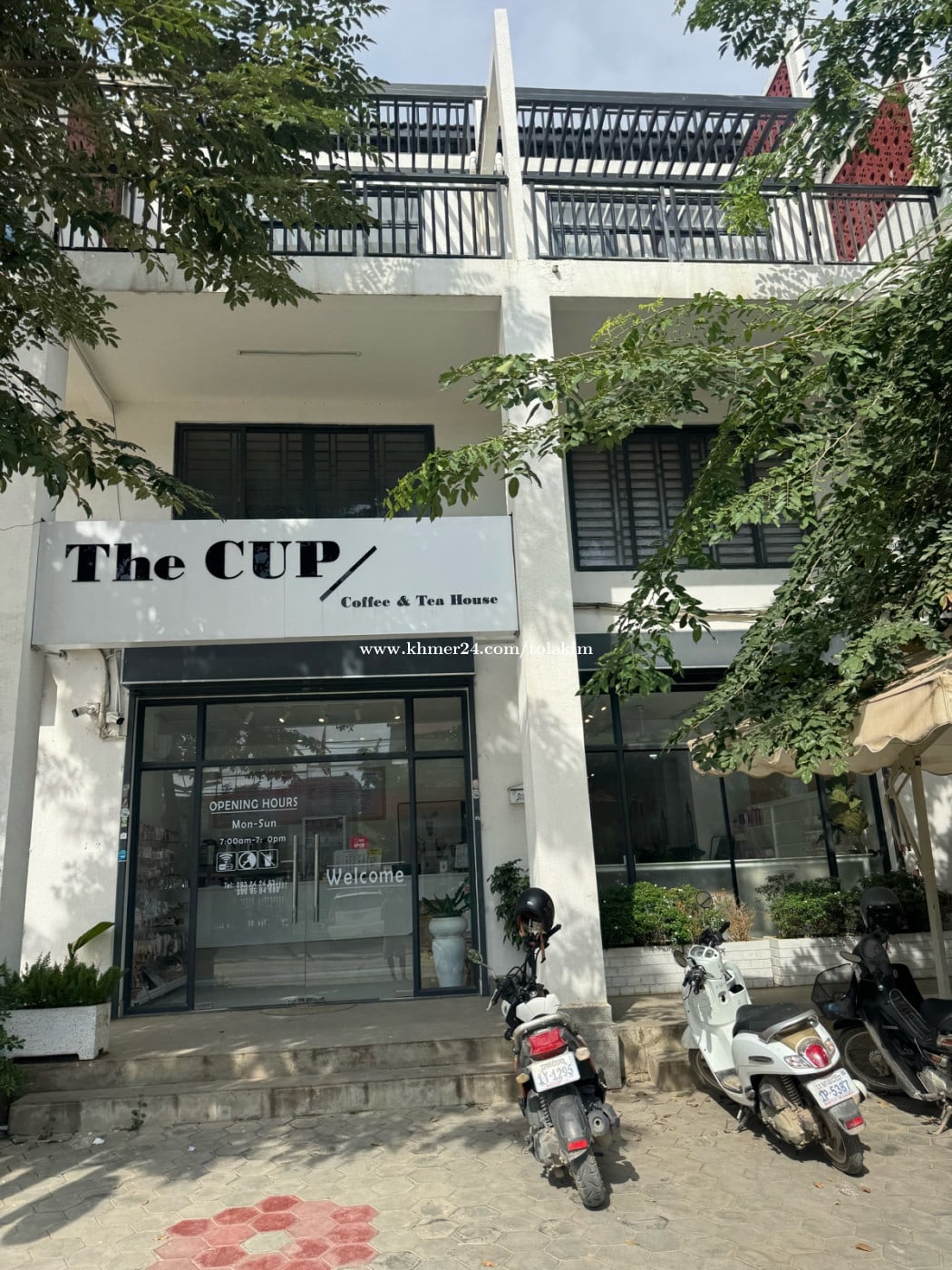 ទល់មុខសាលាឌូវីបុរីរំចេក. ទីតាំងហាងកាហ្វេ The CUP