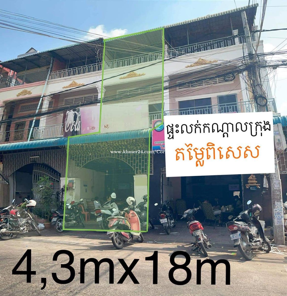 (ផ្ទះមានចំណូលពីការជួលស្រាប់) •ទំហំផ្ទះ ៤,៣ម៉ែត្រ x ១៨ ម៉ែត្រ •សល់មុខ-ក្រោយ សរុប៣ម៉ែត្រ •តម្លៃ $៤៥០០/ម៉ែត្រការេ •តម្លៃកំពុងដាក់លក់(ក្រោមហាងឆេង)