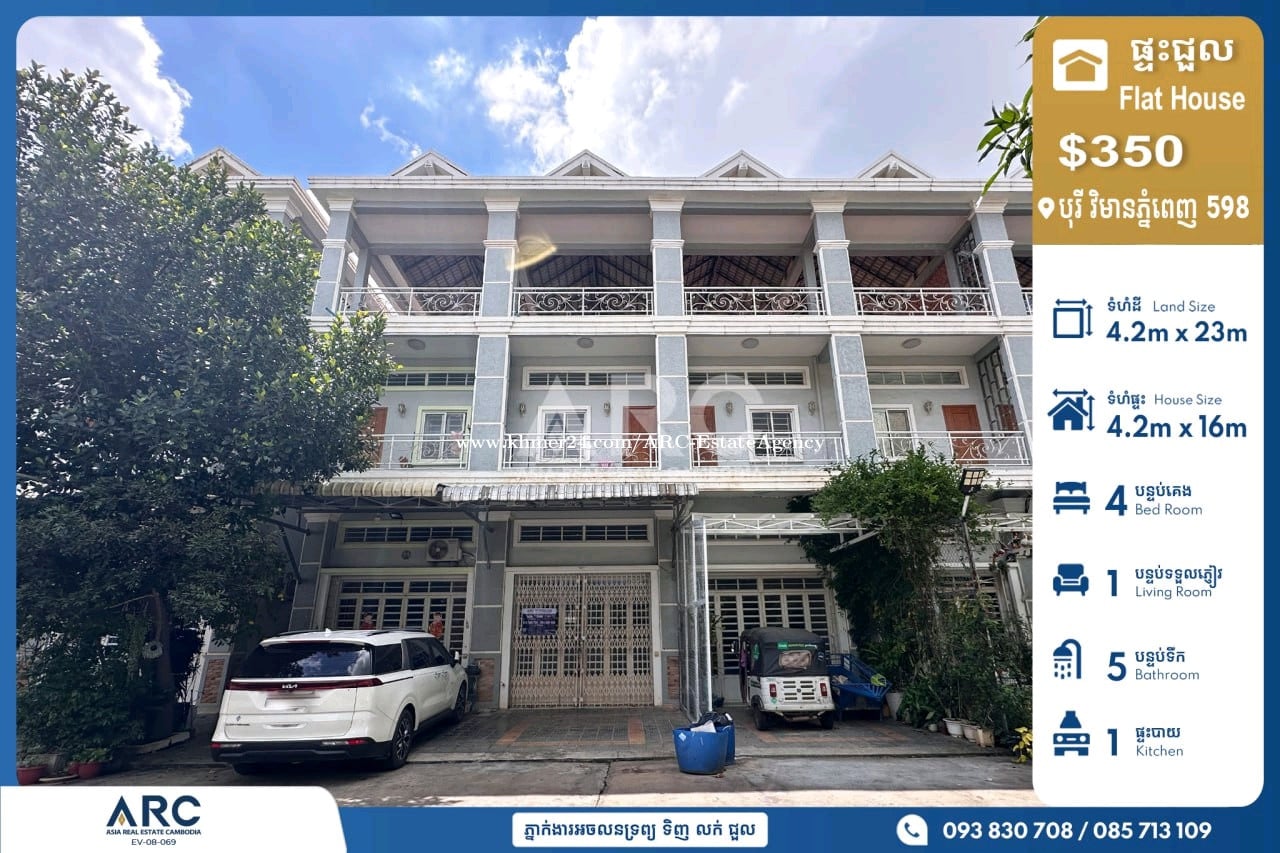 #Flat house For Rent at Borey Vimean Phnom Penh 598 #ផ្ទះល្វែងដាក់ជួលនៅក្នុងបុរី វិមានភ្នំពេញ 598 ជិតផ្សារទំនេីបអុីអន២ 🔹 តម្លៃជួល / Rent Price $350 ( ចរចាបាន ) 🔹 ទំហំផ្ទះ/ House size: 4.2m x 16m 🔹 ទំហំដី / land size: 4.2m x 23m 🔹 បន្ទប់គេង Bedroom: 04 🔹 បន្ទប់ទឹក Bathroom: 05 #永旺2附近 出租价格:$350 美金/可谈 房间数量:04房 , 05卫 建筑面积:4.2米 X 16米 土地面积:4.2米 X 23米 085713xxxClick To Call / 093830xxxClick To Call / 0978899xxxClick To Call Chat to Telegram Agent https://t.me/sonsela14 Channel Telegram https://t.me/ARCKhanResseykeo 👉 អាជ្ញាប័ណ្ណ៖ EV-08-069