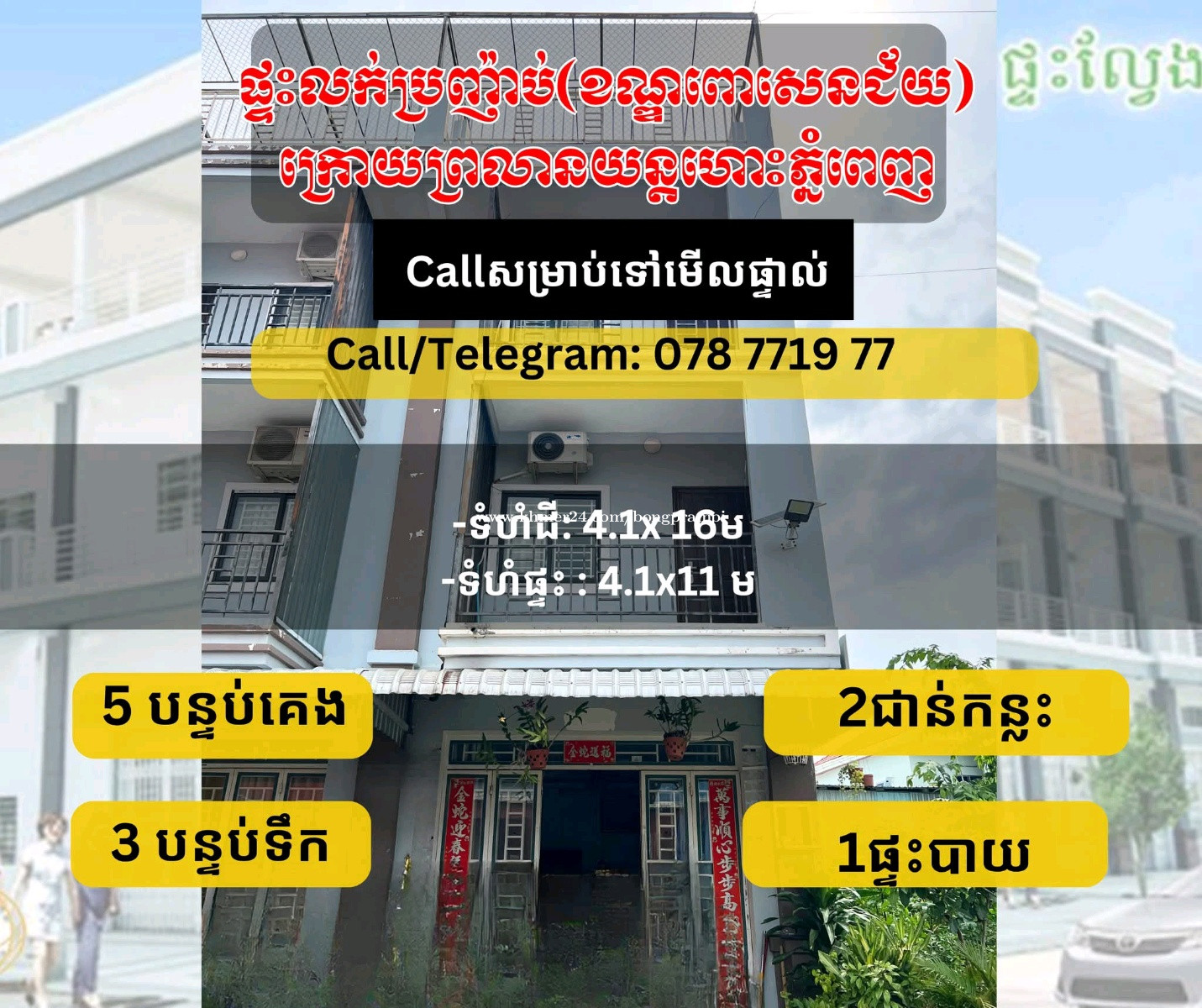 🌸ផ្ទះល្វែងលក់បន្ទាន់..! »»»ផ្ទះលក់ខណ្ឌពោសេនជ័យក្រោយប្រលានយន្តហោះPochentong««« ✍️ទីតាំង: ផ្ទះលក់,ភូមិថ្មគោល1 ខណ្ឌពោសេនជ័យ ⭐តម្លៃលក់: 118,000$ (ចរចា) ⭐ទំហំដី:4,1m x 16m ⭐ទំហំផ្ទះ: 4.1m x 11m ⭐សល់ដីមុខ 4,5m ⭐មានបន្ទប់គេង05 & បន្ទប់ទឹក 03 ⭐ផ្ទះដេគ័រ រួចរាល់ ស្អាត... ✍️ទីតាំងល្អ តម្លៃល្អ តម្លៃធូរថ្លៃក្រោមហាងឆេង ម្ចាស់ផ្ទាល់ត្រូវការលក់បន្ទាន់..! ✍️សម្រាប់ព័ត៌មានបន្ថែម: 👉078771xxxClick To Callតេលេក្រាម