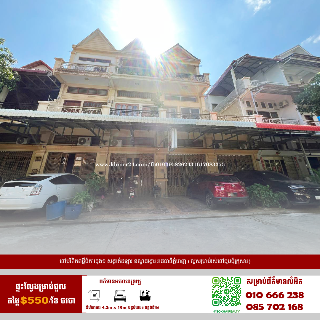 ផ្ទះល្វែងសម្រាប់ជួល នៅបុរីពិភពថ្មីចំការដូង១ ********************** តម្លៃជួលRent Price $550/month ◈━━━━━━━━━━━━◈ ទំហំដីLand Size: 4.2m x 22m ទំហំផ្ទះHome Size: 4.2m x 16m បន្ទប់គេងBedroom: 6 បន្ទប់ទឹកBathroom: 6 📍ទីតាំងស្ថិននៅ បុរីពិភពថ្មីចំការដូង១ សង្កាត់ដង្កោរ ខណ្ឌដង្កោរ ភ្នំពេញ ◈━━━━━━━━━━━━◈ 📍សូមចូលទៅកាន់𝗧𝗲𝗹𝗲𝗴𝗿𝗮𝗺 𝗖𝗵𝗮𝗻𝗻𝗲𝗹ពេលនេះ ដើម្បីស្វែងរកអចលនទ្រព្យពិសេសផ្សេងទៀត៖ 🔗 𝐓𝐞𝐥𝐞. 𝐂𝐡𝐚𝐧𝐧𝐞𝐥:𝗵𝘁𝘁𝗽𝘀://𝘁.𝗺𝗲/𝗦𝗼𝗸𝗵𝗮𝗶𝗥𝗲𝗮𝗹𝘁𝘆 ☎️ 𝗧𝗲𝗹𝗲𝗴𝗿𝗮𝗺:𝟬𝟭𝟬 𝟲𝟲𝟲 𝟮𝟯𝟴 ☎️ 𝗧𝗲𝗹𝗲𝗴𝗿𝗮𝗺:𝟬𝟴𝟱 𝟳𝟬𝟮 𝟭𝟲𝟴