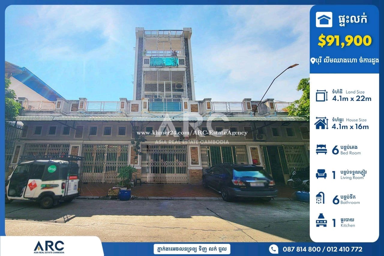 🏘️ ផ្ទះល្វែង(Flat) សម្រាប់លក់បន្ទាន់នៅបុរី លឹមឈាងហោ (ចំការដូង) *តម្លៃ: 91,900$(ចរចាជាមួយម្ចាស់ផ្ទះផ្ទាល់) *ទំហំផ្ទះ Size House: 4.1m x 16m *ទំហំដី Size Land: 4.1m x 22m *បន្ទប់គេង Bedroom: 6 *បន្ទប់ទឹក Bathroom: 6 👉ផ្ទេរកម្មសិទ្ធិ:(ប្លង់រឹងជូន) 👉ផ្ទះថ្មីស្អាត ៥នាទីពីផ្សារទំនើបស្ទឹងមានជ័យថ្មី មានសន្តិសុខ២៤ម៉ោង មានផាសុខភាព សុវត្ថិភាព..... 📍 នៅសង្កាត់ដង្កោ ខណ្ឌដង្កោ រាជធានីភ្នំពេញ Tel: 087814xxxClick To Call / 092821xxxClick To Call / 067477xxxClick To Call Telegram http://t.me/@Vebol087 Channel Telegram https://t.me/ARCDangkorVebol Channel telegram: https://t.me/AsiaRealEstateCambodia #ផ្ទះលក់បន្ទាន់ខ្លាំង #villaforsale #KhanDangkao #khanmeanchey 👉អាជ្ញាប័ណ្ណ: EV-08-069