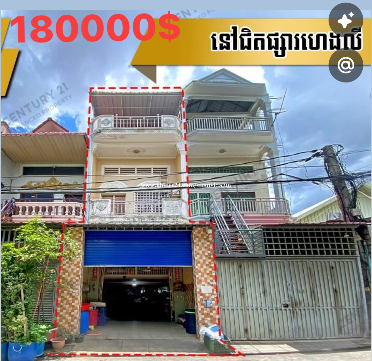 ស្ថិតនៅសំណង់12ជាប់របងផ្សារហេងលី មានសួននៅពីមុខផ្ទះ 4*16m