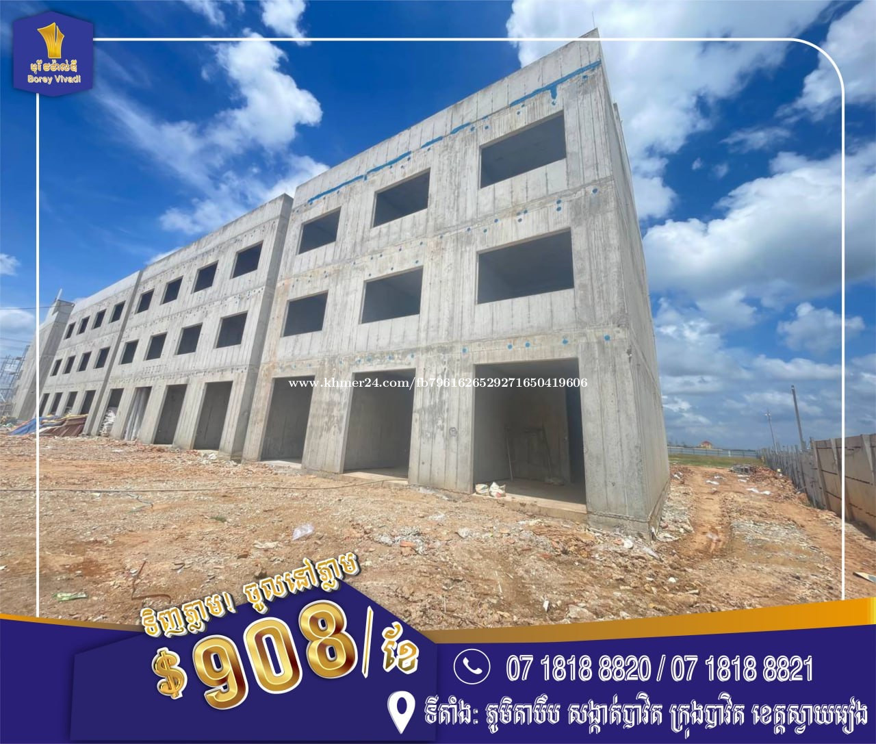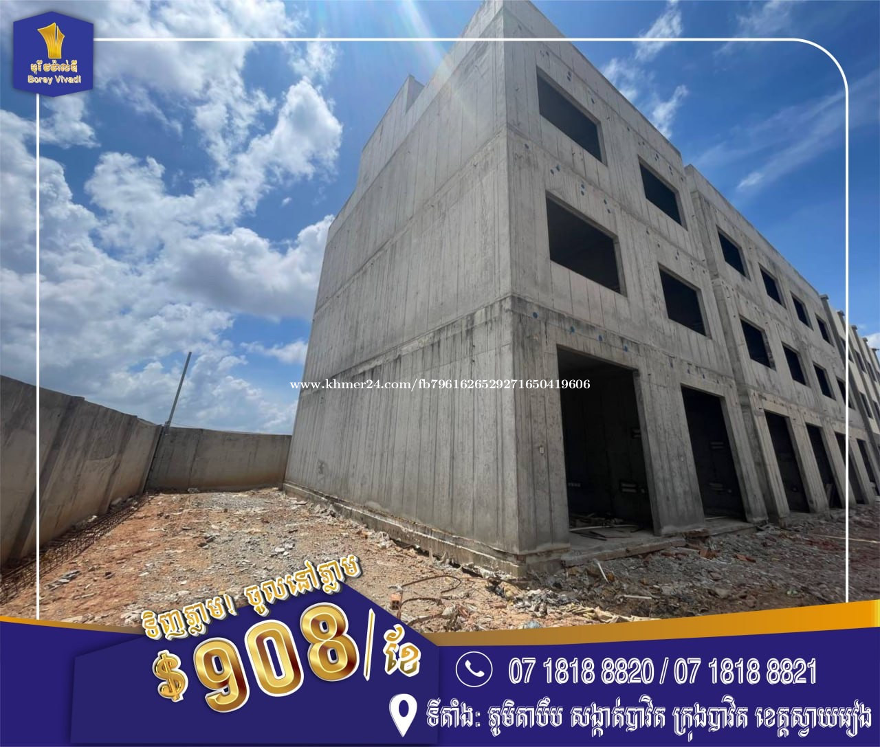 #តោះបងៗឡេីងBlockថ្មីទៀតហេីយរស់រានឡេីងបងប្អួនមកមុនបានមុនចំនួនមានកំណត់សម្រាប់រដូវភ្ជុំបិណ្ឌខាងមុននេះ🫶❤️ 👉ជាប្រភេទផ្ទះអាជីវកម្មបែបទំនេីប 👉ចាក់ជញ្ជាំងបេតុងRC (មិនប្រេីឥដ្ឋ) 👉ប្រេីប្រាស់សម្ភារះល្អៗធានាគុណភាពដល់50ឆ្នាំ 👉ប្រព័ន្ធភ្លេីងរៀបតាមស្តង់ដារដោយវិស្វករចិនជំនាញៗ 👉ធន់នឹងកម្តៅ ធន់នឹងខ្យល់ ធានាគ្មានការលិត ជ្រាប ប្រះស្រាំ100%🫶 👉មិនត្រឹមតែជាផ្ទះរស់នៅតែជាផ្ទះផ្តល់នូវផាសុកភាពពេញលេញ 👉មានសន្តិសុខ24ម៉ោង 👉មានរបងហ៊ុំព័ទ្ធជុំវិញបុរីធានាសុវត្ថិភាព24ម៉ោង 👉មានអ្នកសំអាតតាមដងផ្លូវជុំវិញបុរី 👉មានដេីមឈេីអមដោយផ្កាជុំវិញបុរី 🗣️បូកថែមទាំងមានប្រូម៉ូសិនជាច្រេីនសន្ធឹកសន្ធាប់🎉🥳😱 💥Freeប្លង់រឹង 💥បញ្ចុះតម្លៃ15%ភ្លាមៗ 💥ម៉ាស៊ីនត្រជាក់4គ្រឿង 💥ម៉ាសុីនបឺកផ្សែង1គ្រឿង 💥Freeទូតាំង1ឈុតធំ ———————————————————————««🔈 #ព័តមានលម្អិត: ☎️ 0718188xxxClick To Call ☎️ 0718188xxxClick To Call #ទាក់ទងការិយាល័យផ្ទាល់👇❤️ @Borey8820