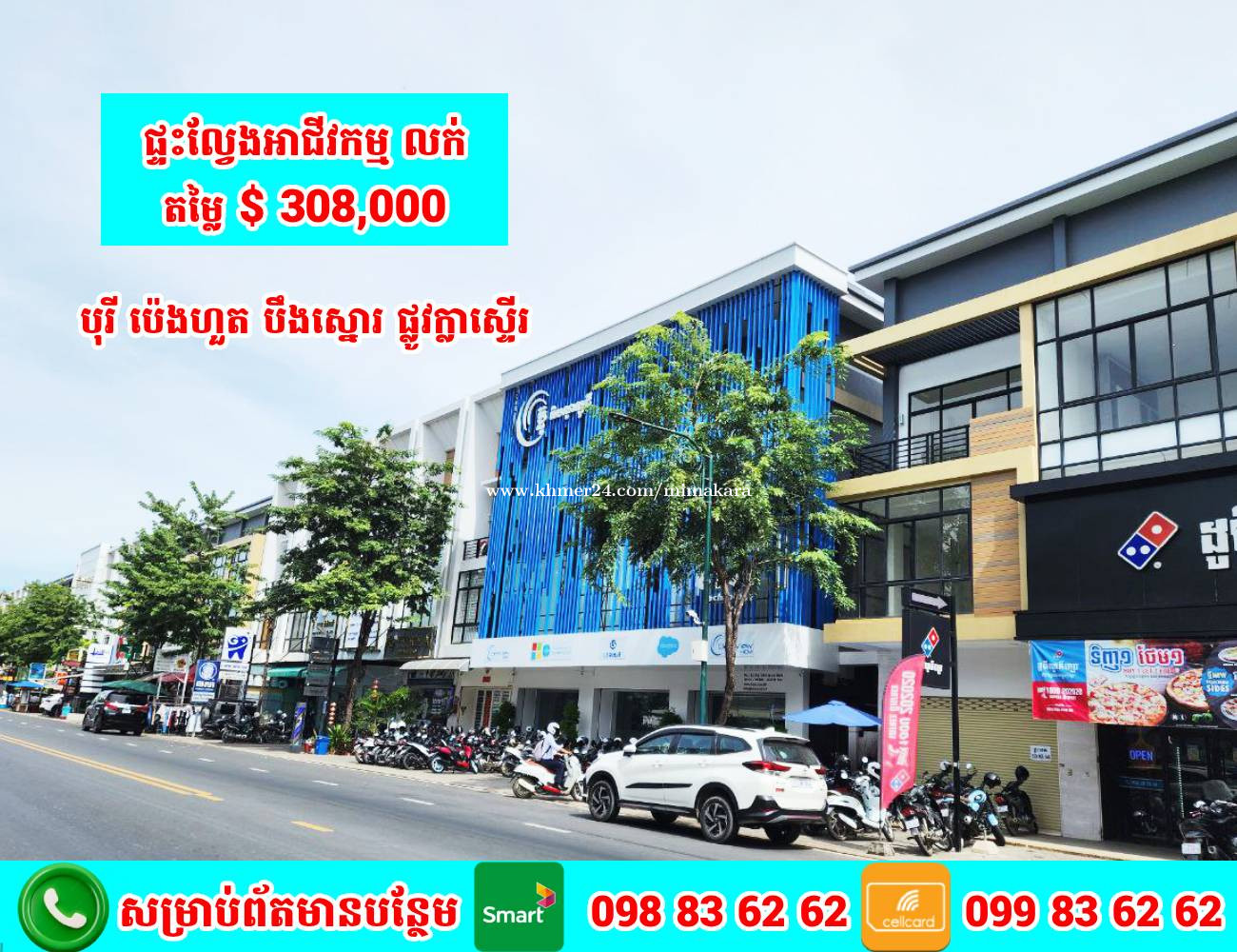 ផ្ទះល្វែងអាជីវកម្ម លក់បន្ទាន់ តម្លៃដាក់លក់ $ 3០8,000 ចរចា ទំហំផ្ទះ 4.5mx 14m ទំហំដី 4.5mx 23m បន្ទប់គេង 04 បន្ទប់ទឹក 05 ប្លង់បុរី សម្រាប់ព័តមានបន្ថែម 099836xxxClick To Call Telegram