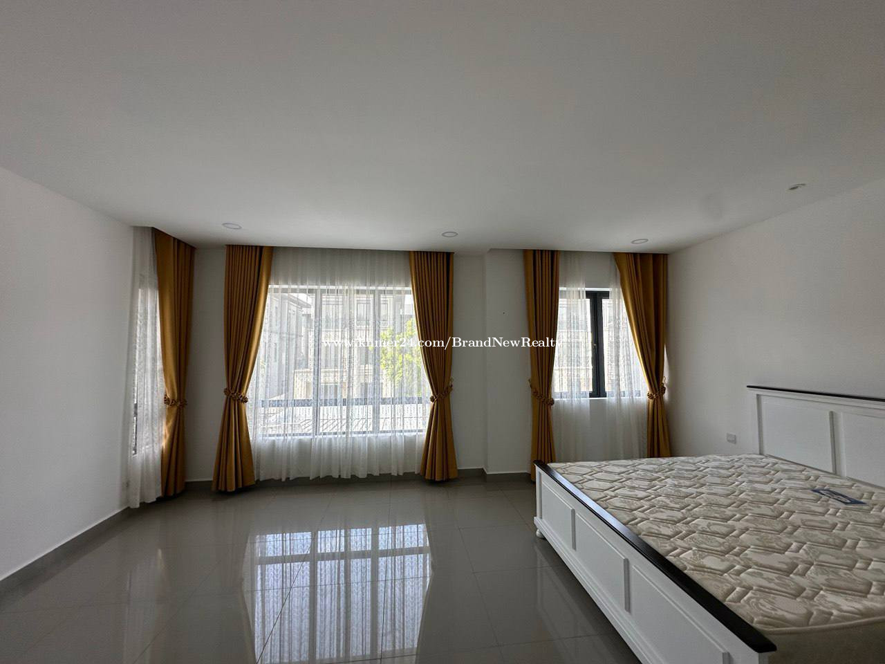 ផ្ទះវិឡាភ្លោះ TWIN SII ជួល ឬ លក់ បុរីជីបម៉ុង Grand Phnom Penh៖ តម្លៃជួលក្នុងមួយខែ៖ 2,200 USD ទំហំផ្ទះ៖ 5,5 x 12 (m) ទំហំដី៖ 6,5 x 16 (m) មាន ៤ បន្ទប់គេង, ៥បន្ទប់ទឹក, បន្ទប់ទទួលភ្ញៀវ, ផ្ទះបាយ, ធ្វើដំបូលមុខក្រោយស្រាប់, ម៉ាស៊ីនទឹកក្តៅ, សាឡុង និង គ្រឿងសង្ហារឹមផ្សេងៗដូចក្នុងរូប។ TWIN SII Villa for rent or sale, Borey Chip Mong Grand Phnom Penh: Monthly rental price: 2,200 USD House size: 5.5 x 12 (m) Land size: 6.5 x 16 (m) There are 4 bedrooms, 5 bathrooms, a living room, a kitchen, a front and back roof, a hot water heater, a sofa, and other furniture as shown in the picture. 位于金边Borey Chip Mong Grand的TWIN SII别墅出租或出售: 月租金:2,200美元 房屋面积:5.5 x 12米 土地面积:6.5 x 16米 房子有4间卧室、5间浴室、一个客厅、一个厨房、前后屋顶、热水器、沙发以及其他如图所示的家具
